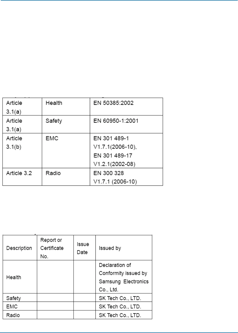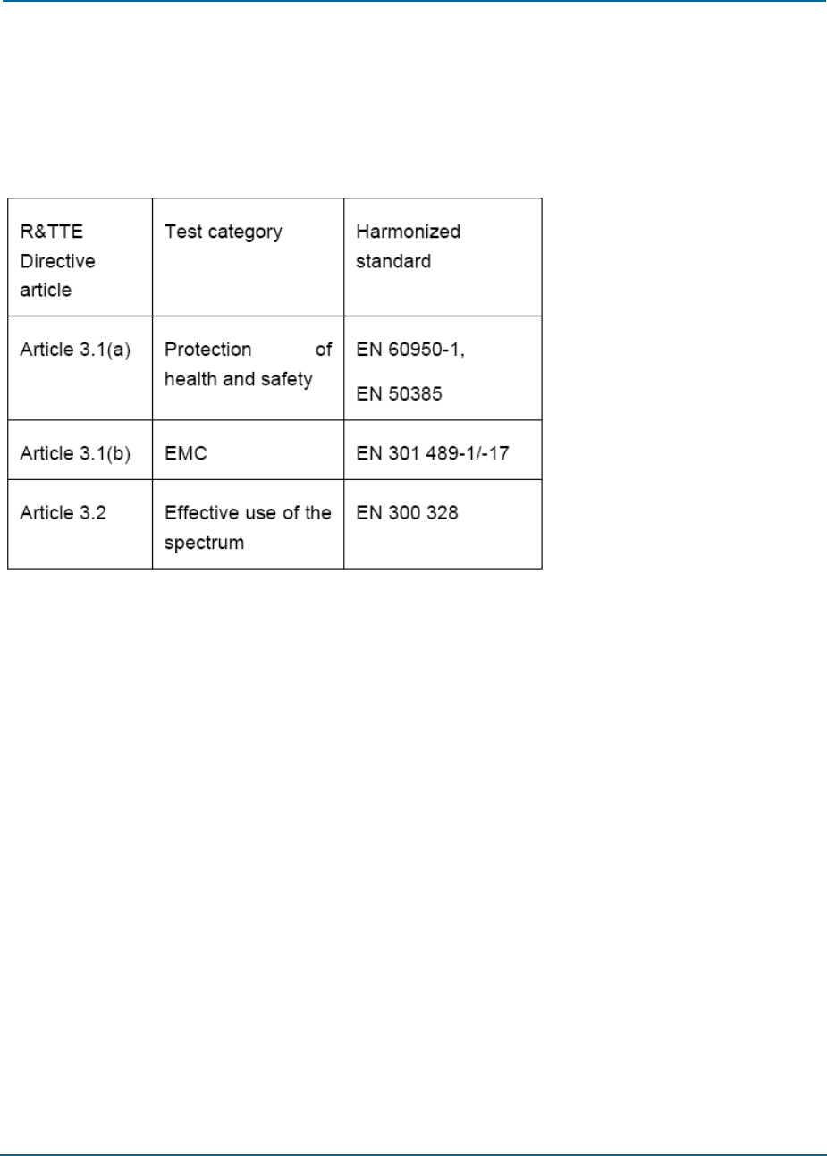 requirements of the R&TTE Directive Article 3.1(a) and (b), safety and EMC respectively,