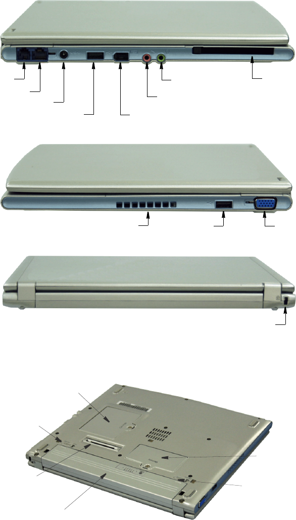 The figure below is the bottom view of the PC without the Docking Station attached.