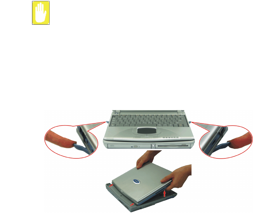 3. Press down on the rear of the computer until it clicks fully home into the docking