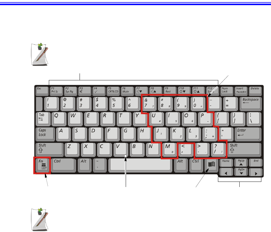 •The Application/Fn key is used for quick access to shortcut menus and help