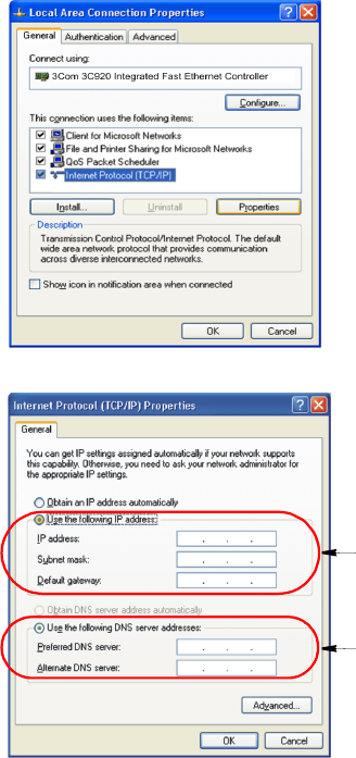 8. In the “Use the following DNS server addresses” box, Enter your Preferred DNS