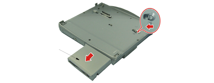 1. Press the button on the CD-ROM or DVD-ROM drive, and the tray slides out.