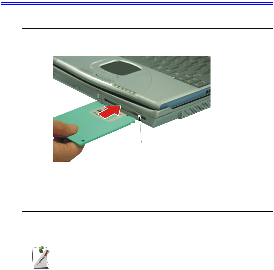 To remove a floppy disk, press the floppy disk eject button on the front of the floppy