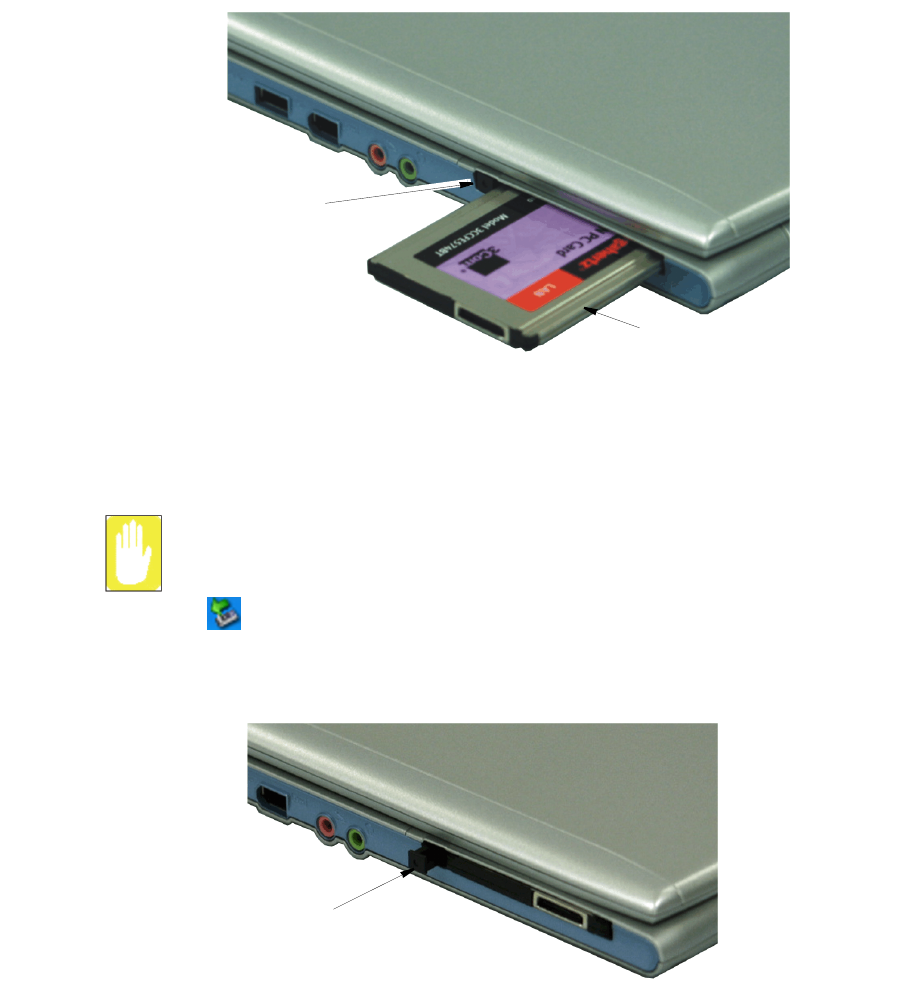 The eject button for the card slot operates in two steps, therefore to remove a PC