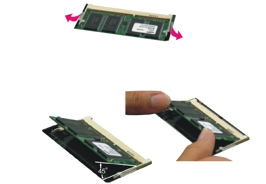 7. Push the memory module into the slot at a slight angle until the connectors are fully