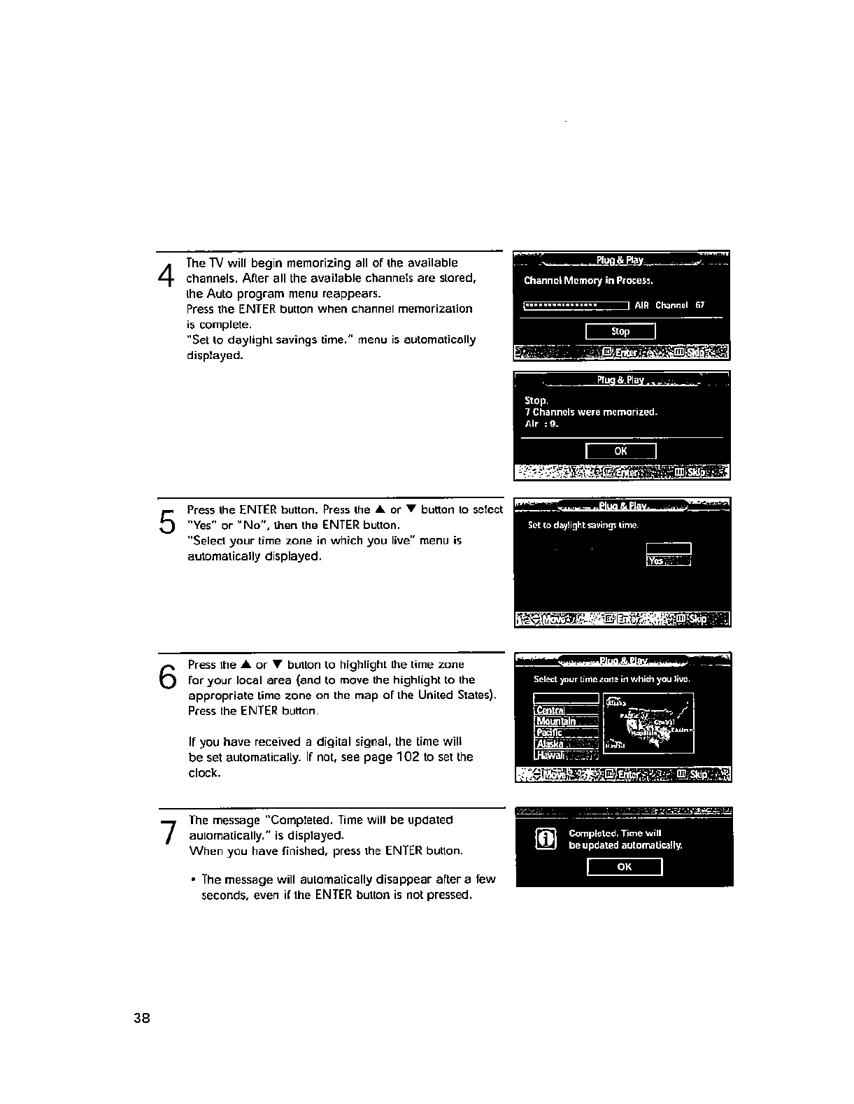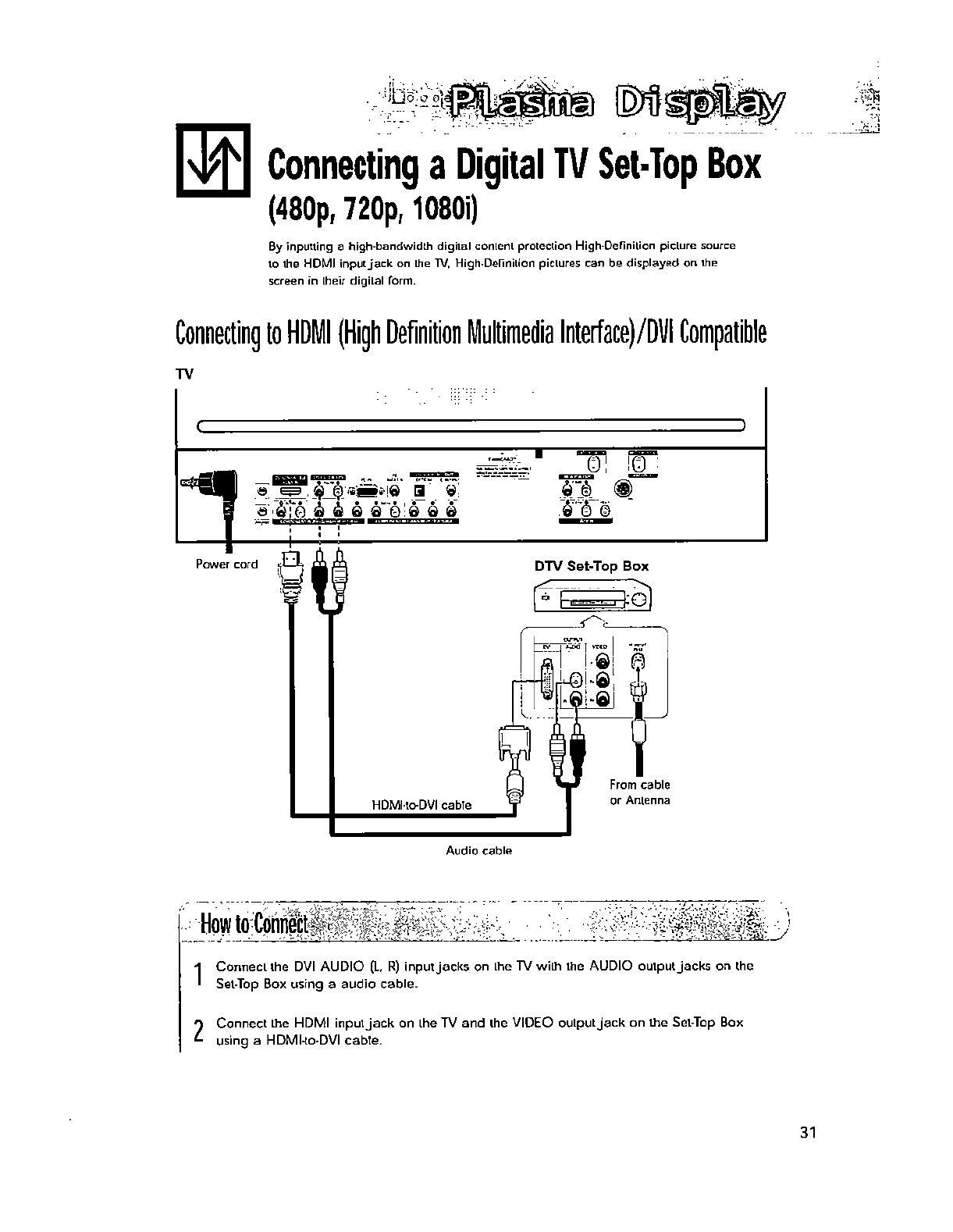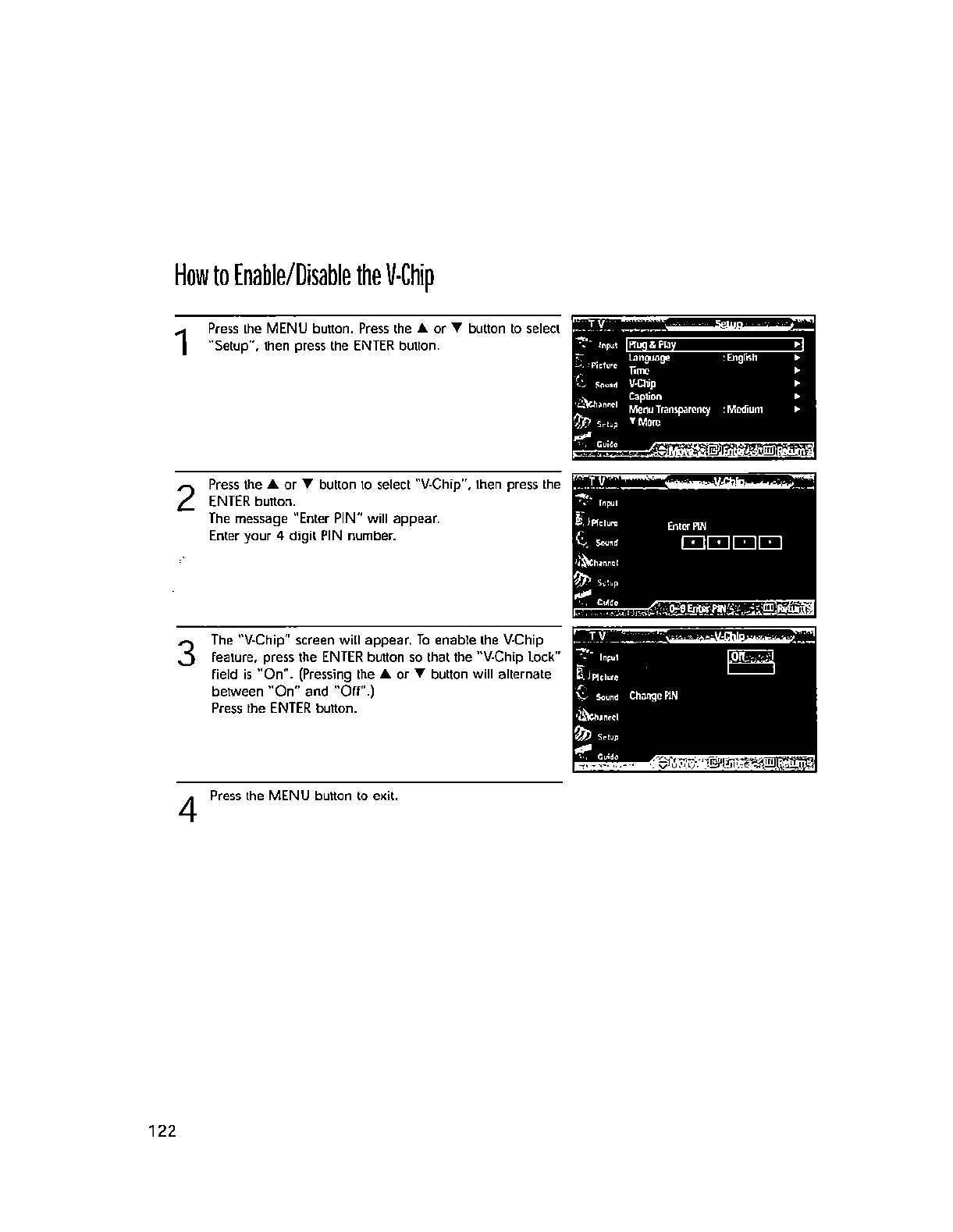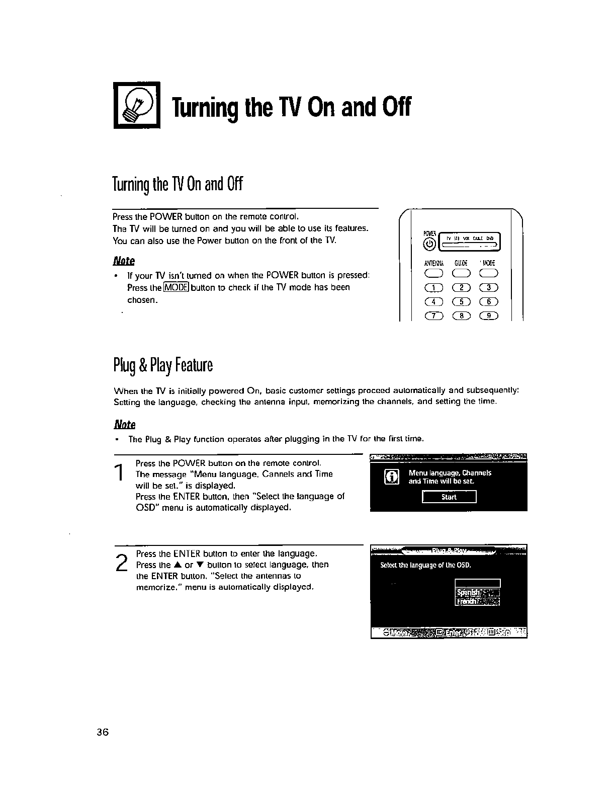 wall outlet and disconnect the antenna or cable system. This will prevent damage to the set due to lightning and power