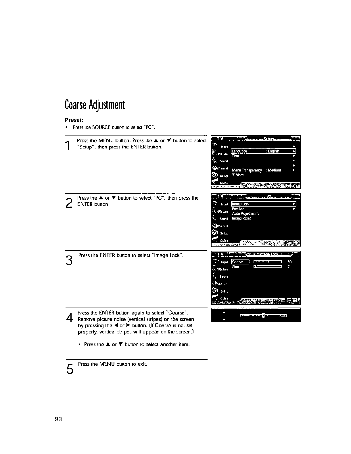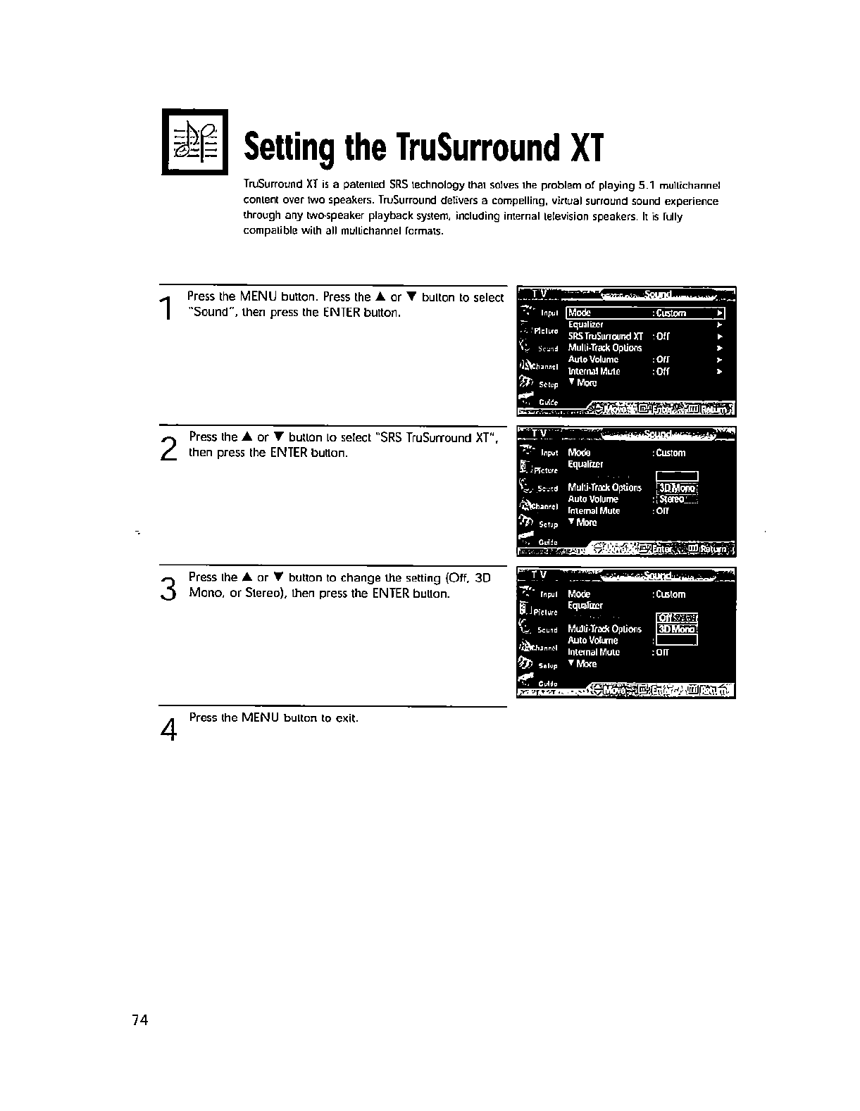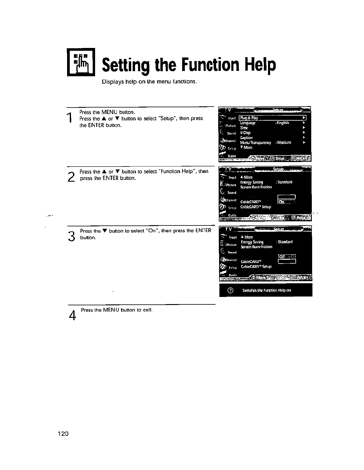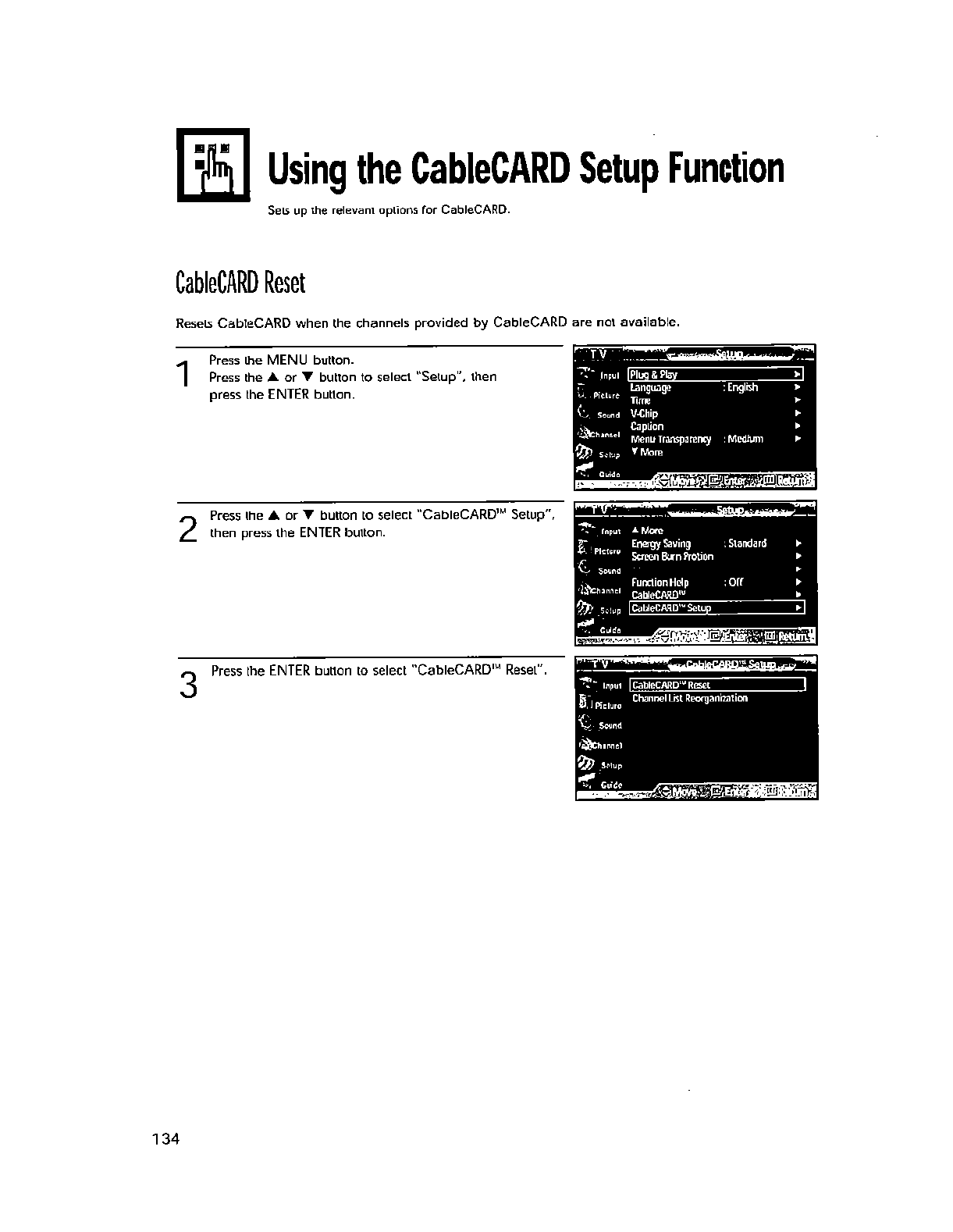 wall outlet and disconnect the antenna or cable system. This will prevent damage to the set due to lightning and power