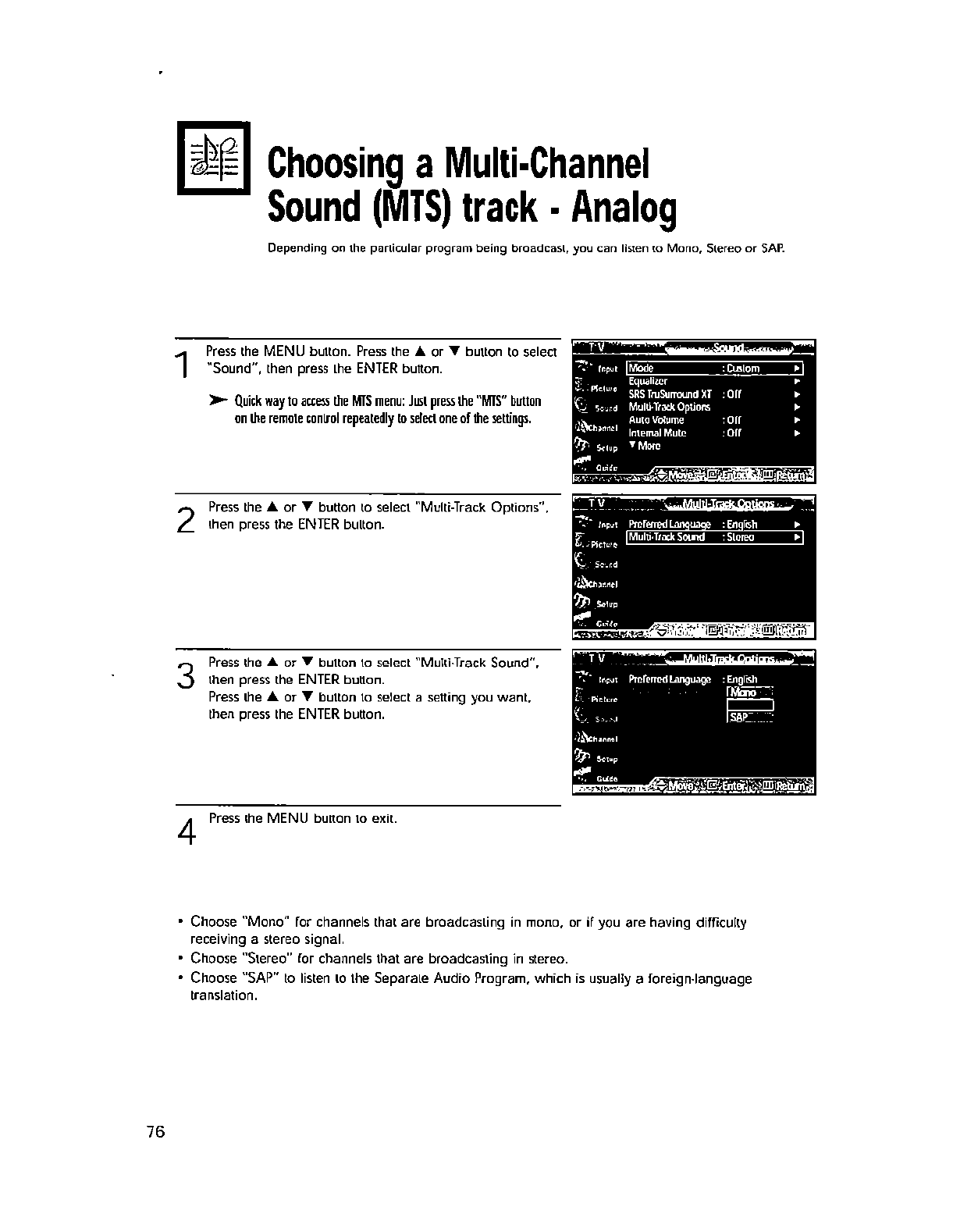 -- Consult the dealer or an experienced radio/TV technician for help.
