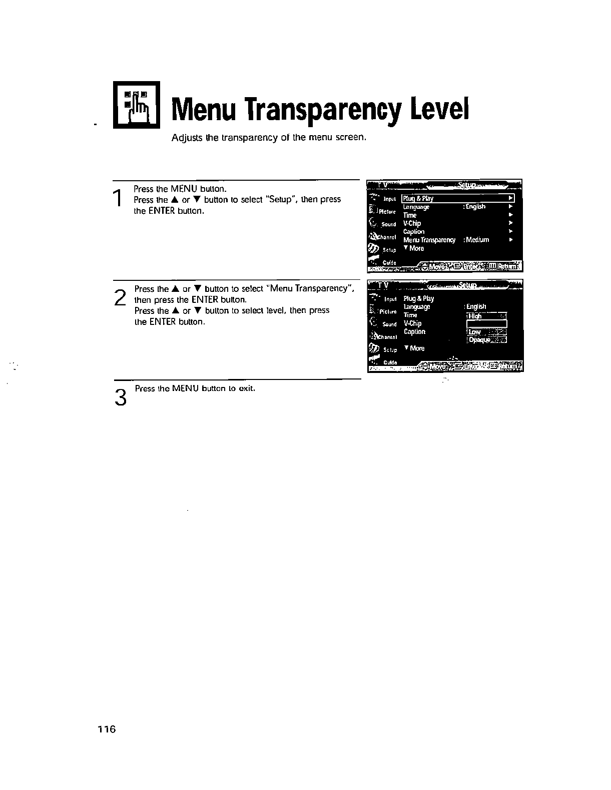 - Do not place this apparatus in a confined space, such as a bookcase, or built-in cabinet, unless proper ventilations is provided.