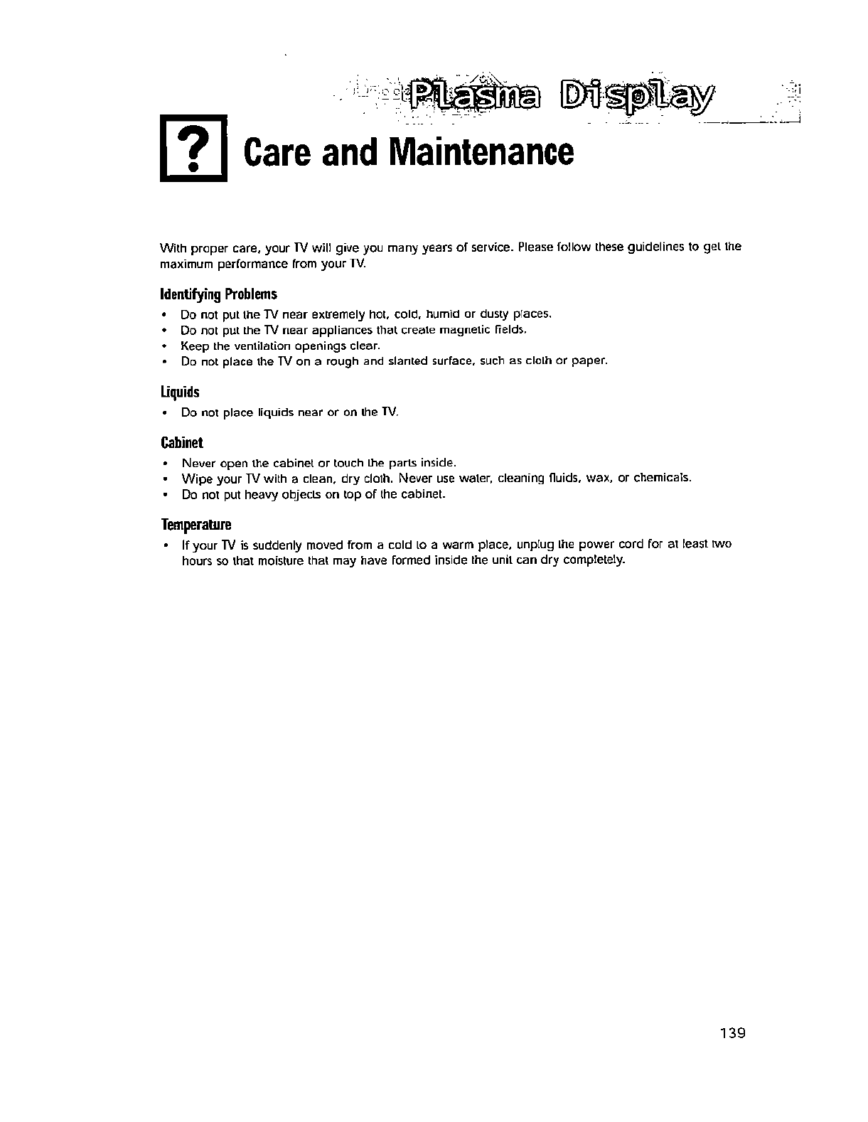 - Do not cover the slots and openings with a cloth or other materials.