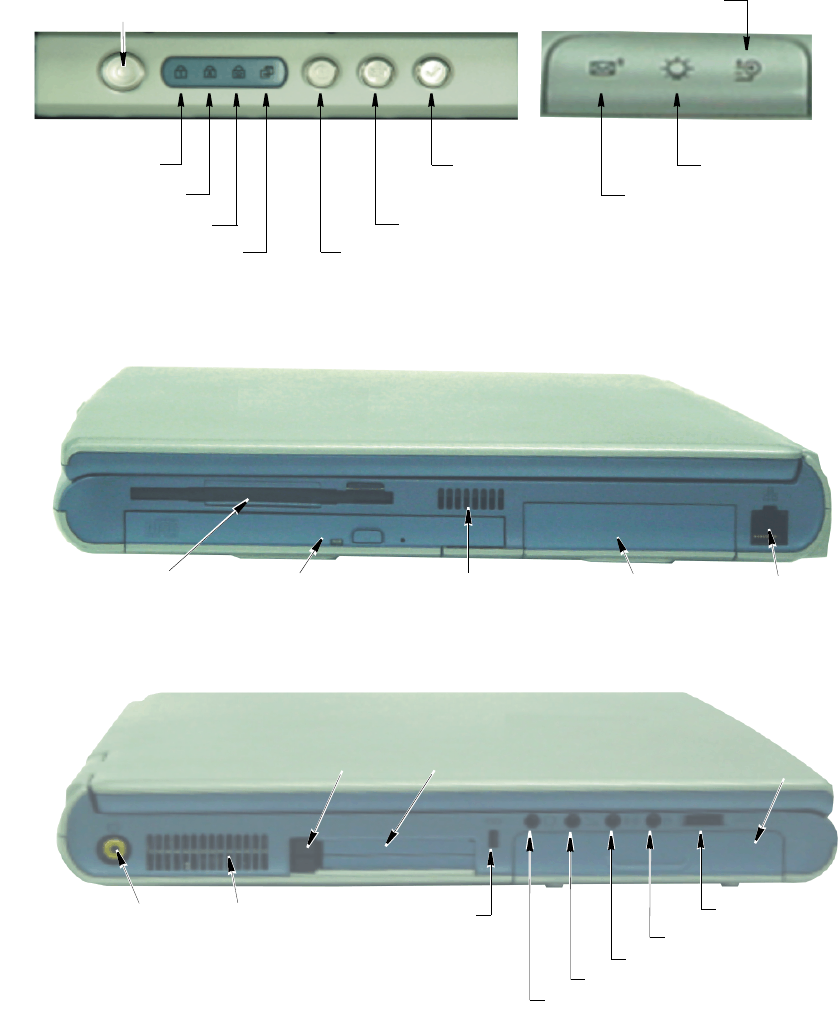 •Two PC-Card slots: You can install Type I, II, or III cards in the slots.