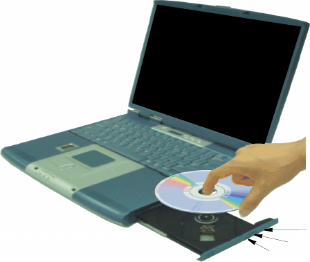 1. Press the button on the CD-ROM or DVD-ROM drive, and the tray slides out.