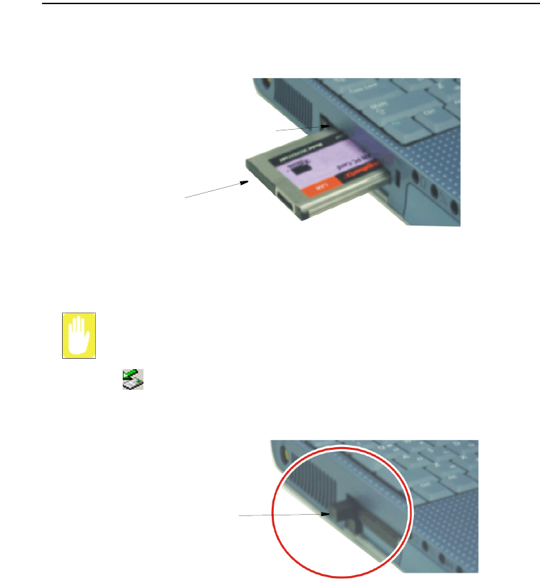 The eject button for the card slot operates in two steps, therefore to remove a PC Card: