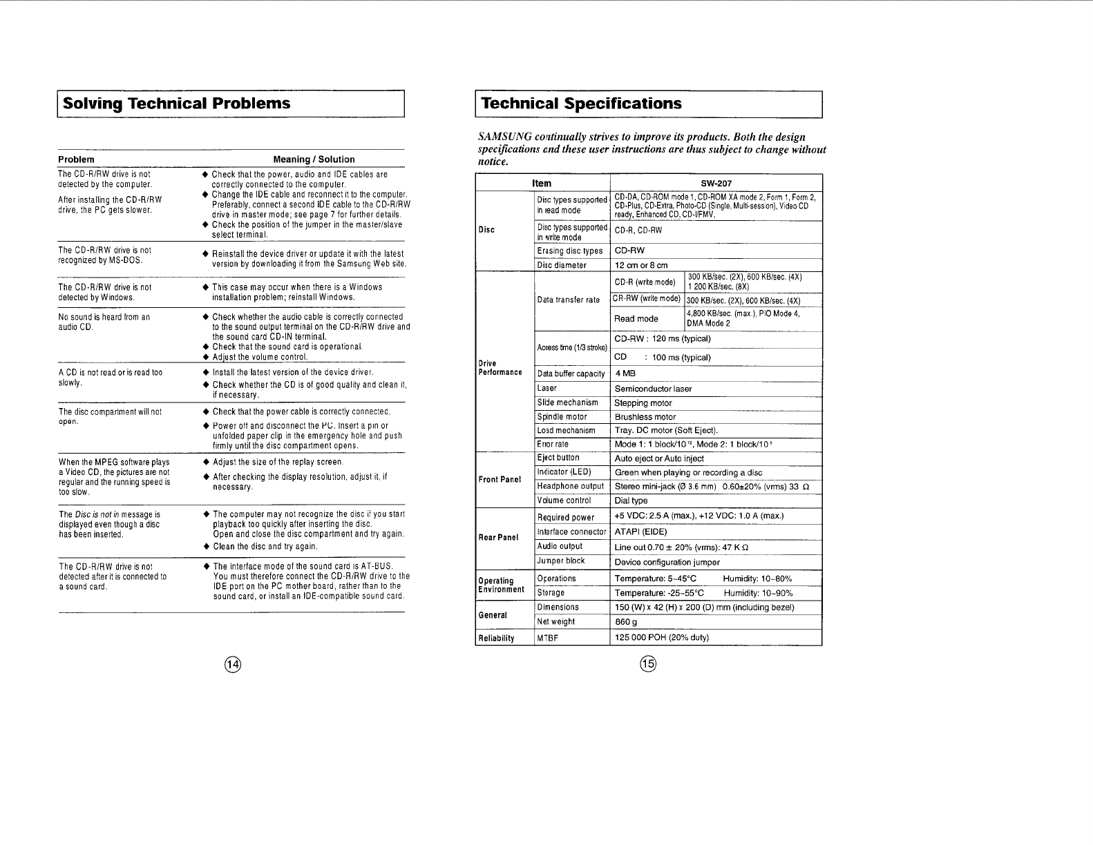 Samsung Electronics Co SW207 CD-R/RW Drive User Manual