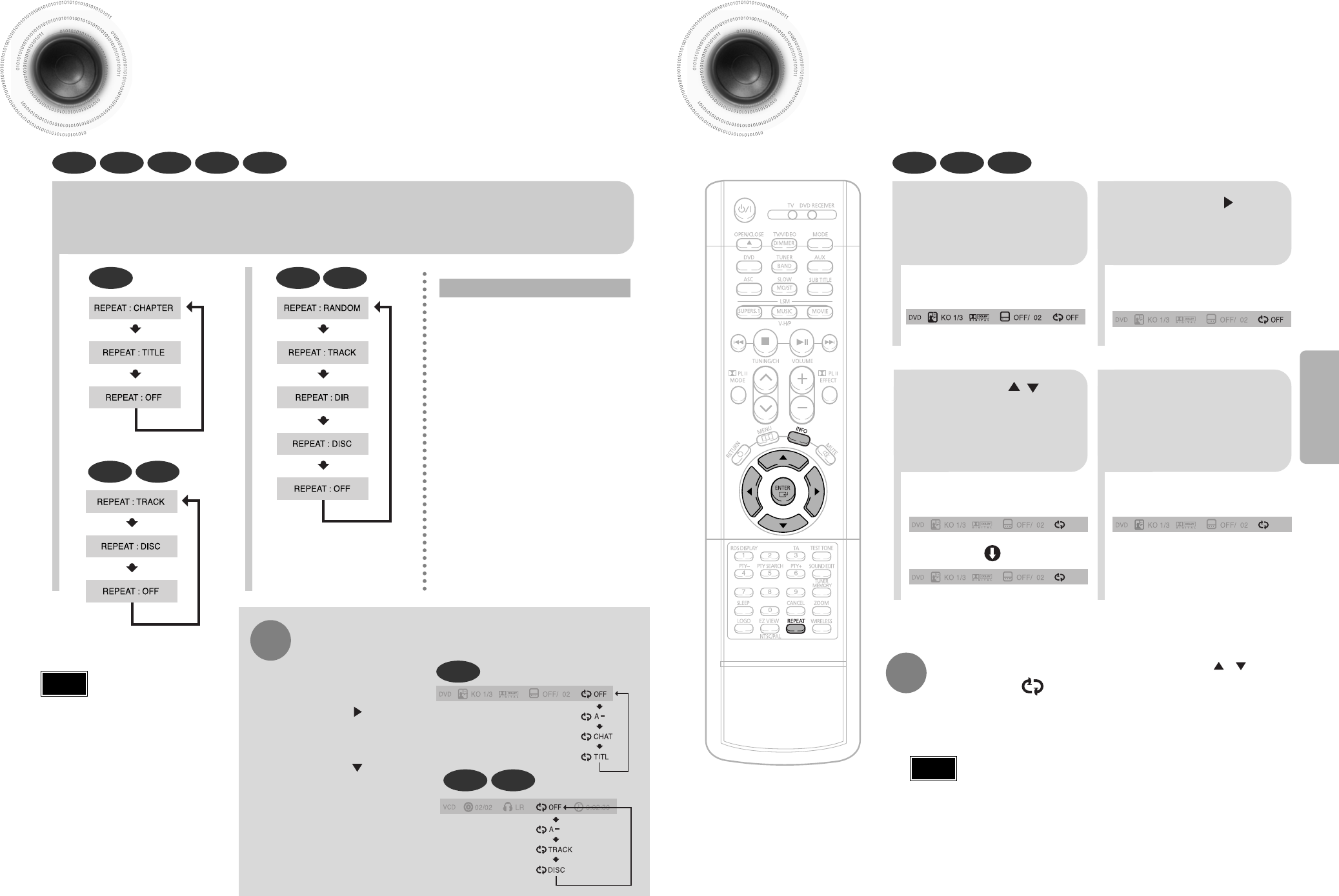 Repeat playback allows you to repeatedly play a chapter, title, track (song), or directory (MP3 file).