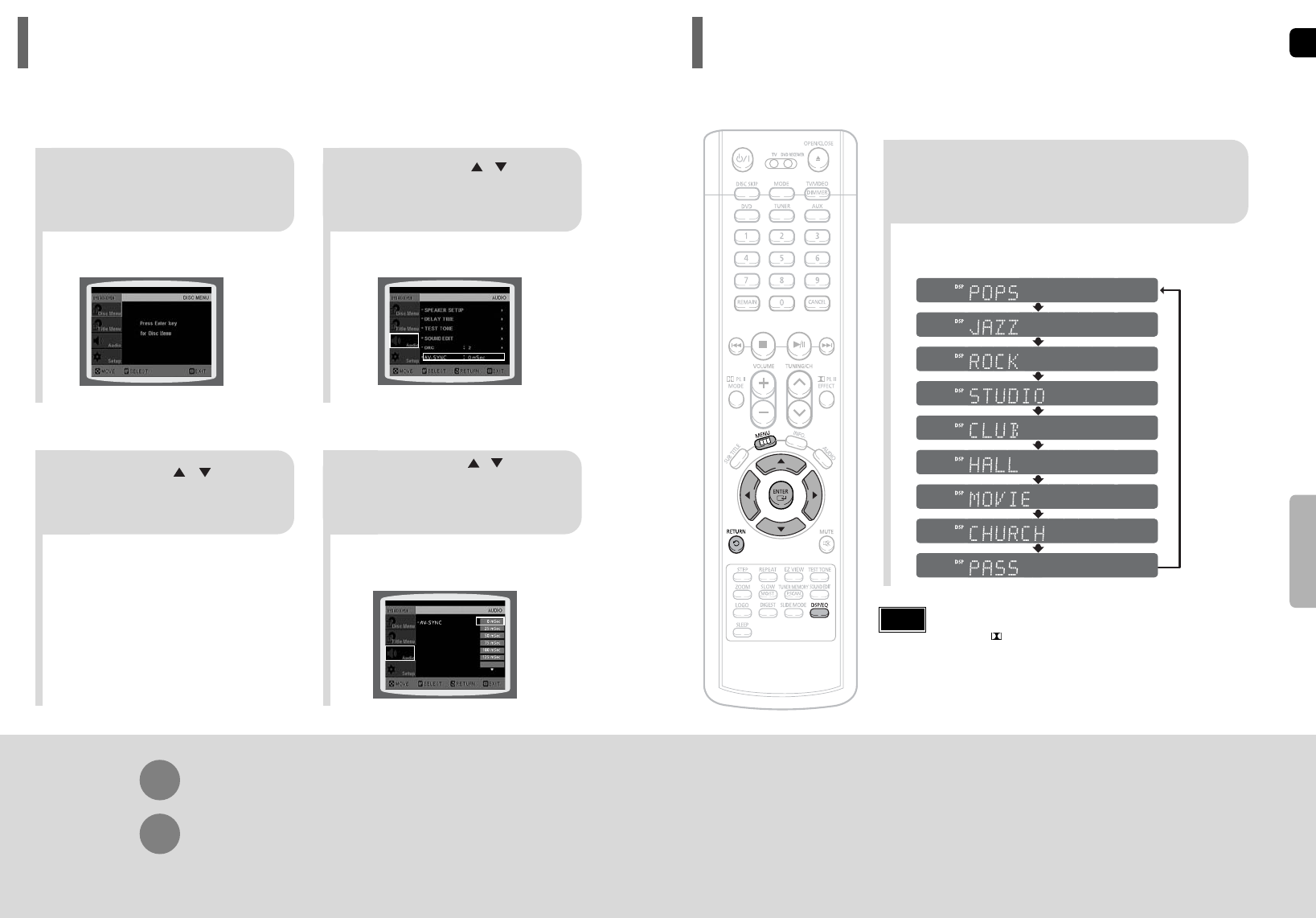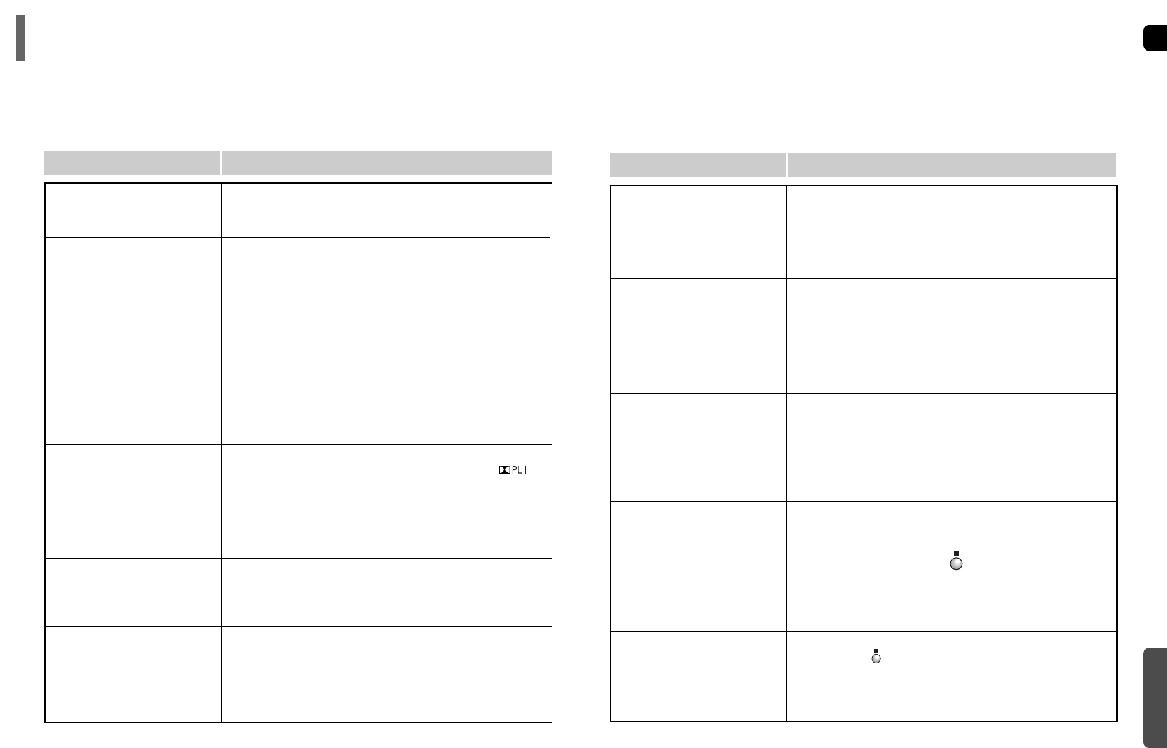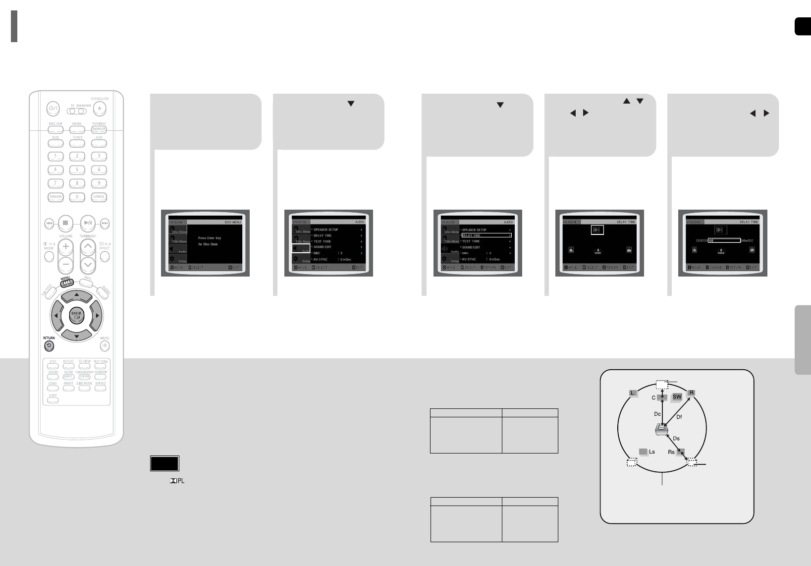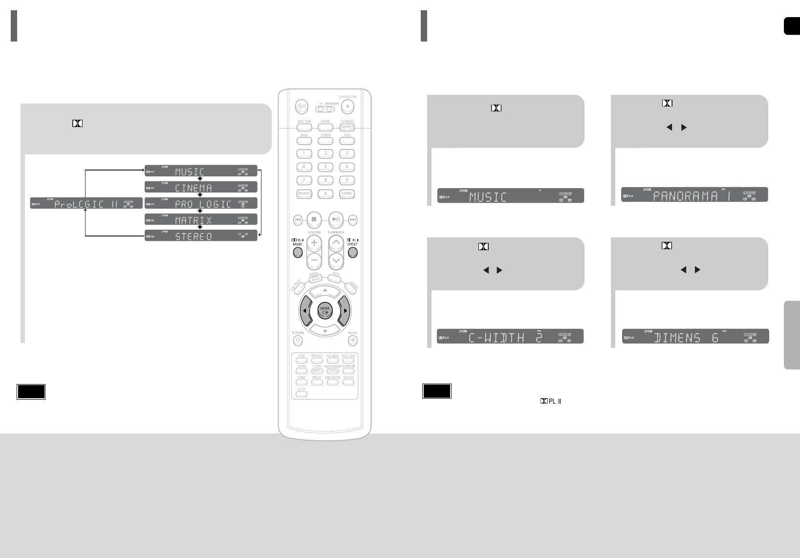 • Depending on PRO LOGIC and STEREO settings, the speaker mode may vary (see page 61).