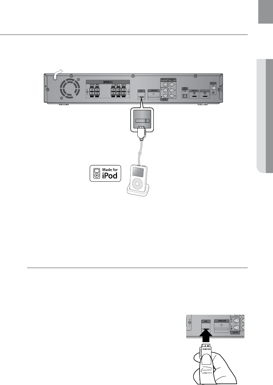 Connect the iPod dock connector to the iPod jack on the DVD home theater.1.
