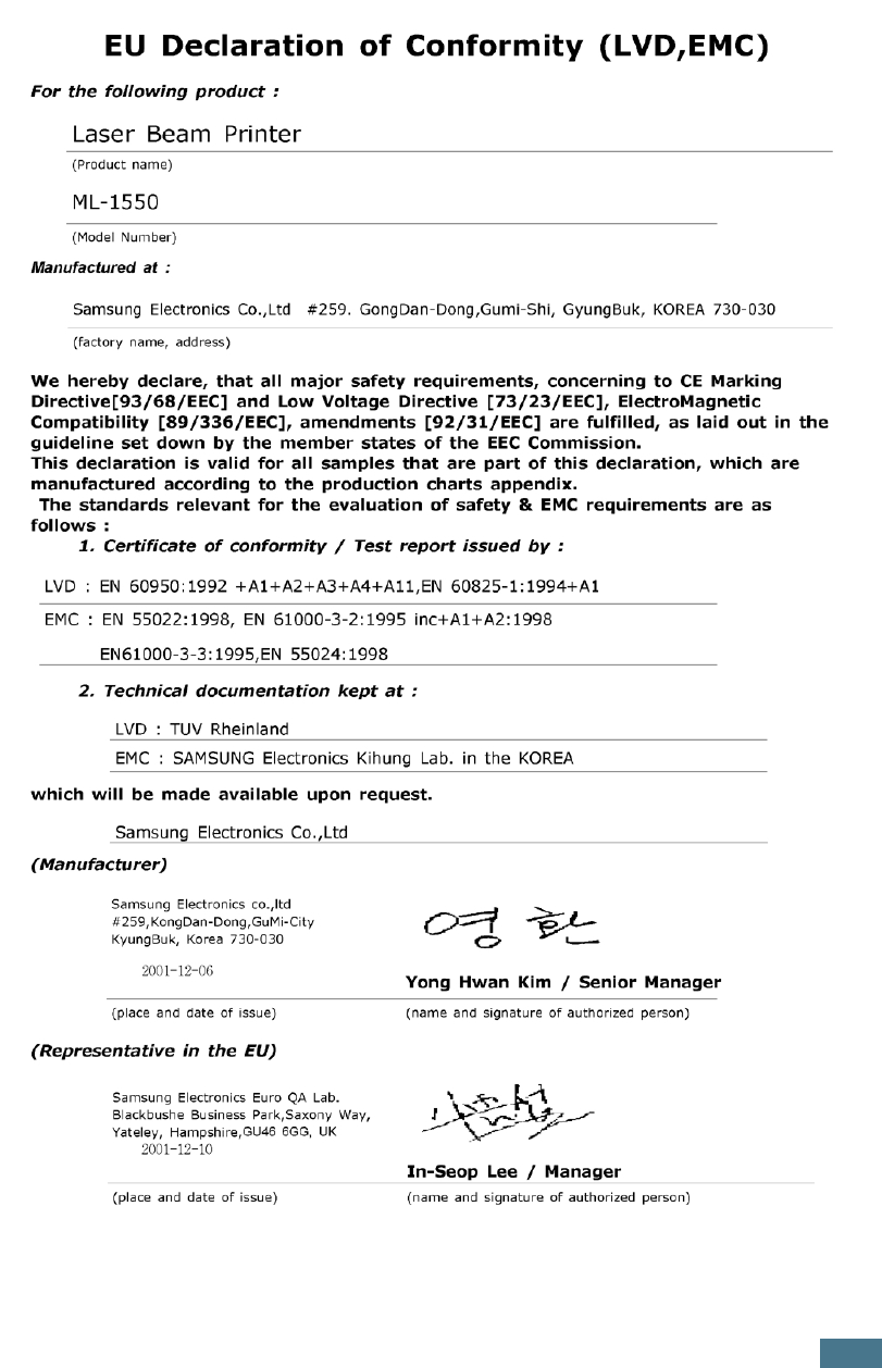 •ML-2150 and Samsung logo are trademarks of Samsung Electronics Co., Ltd.