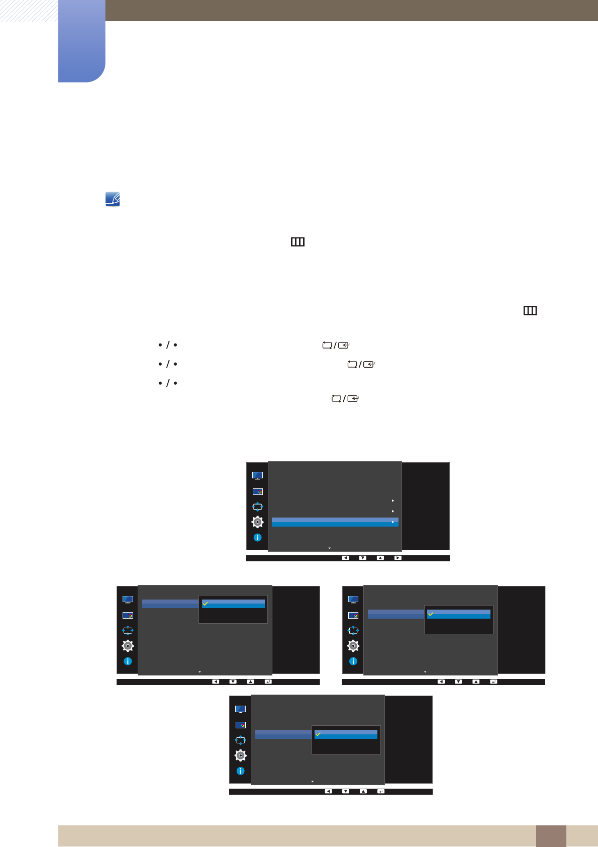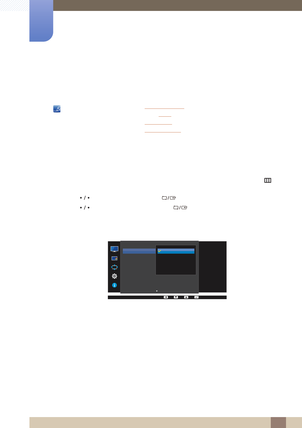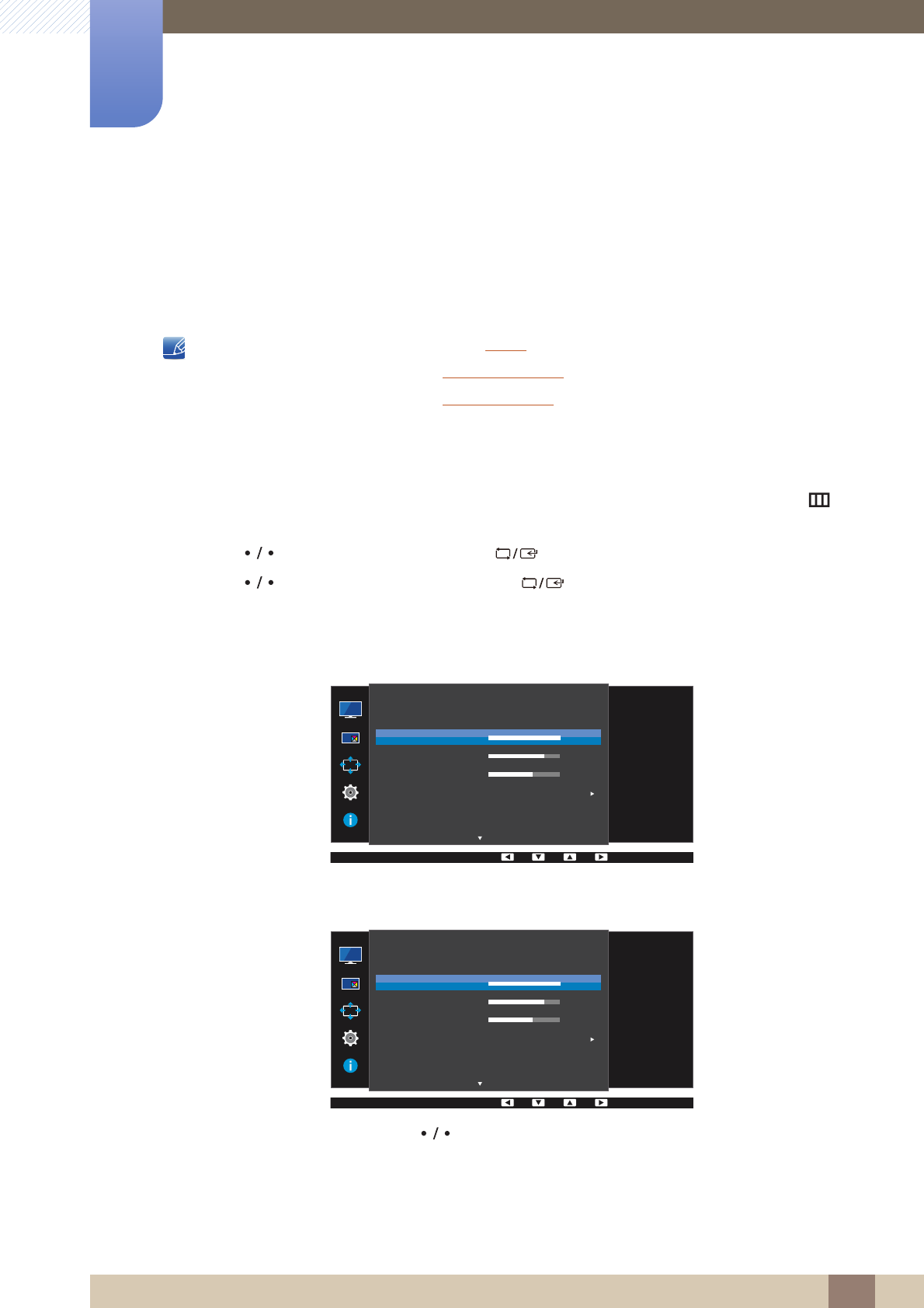 On screen display (OSD) allows you to customize on-screen settings to optimize the picture quality as