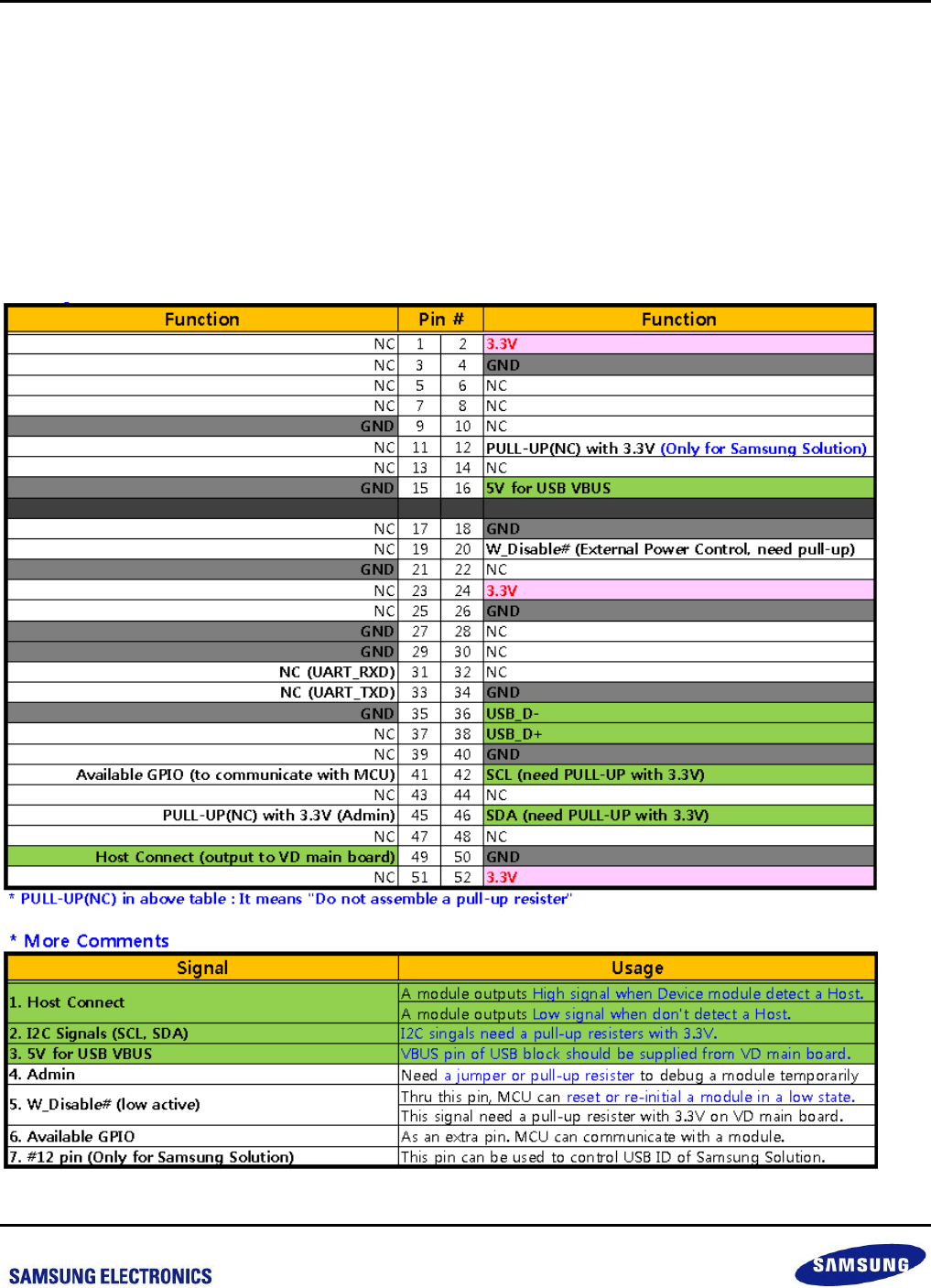 and 52 (+3.3V) are connected in common, all these should connect to the host system power rail. Connector pins
