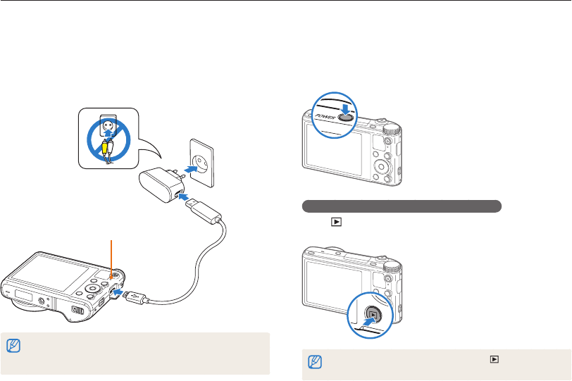 When you use the AC charger, turn off the camera before you
