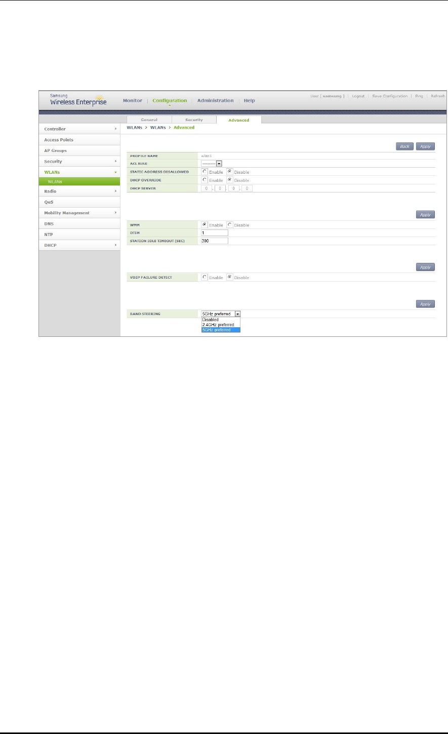 Click Apply after selecting Enable or Disable, then operator can configure the Wireless