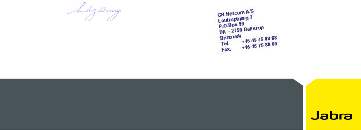 expressly approved by Jabra (GN Netcom) will void the user’s authority to operate the equipment.