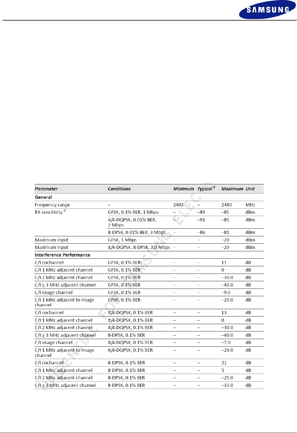 Figure 3-1 Receiver RF Specifications (bcm20705)