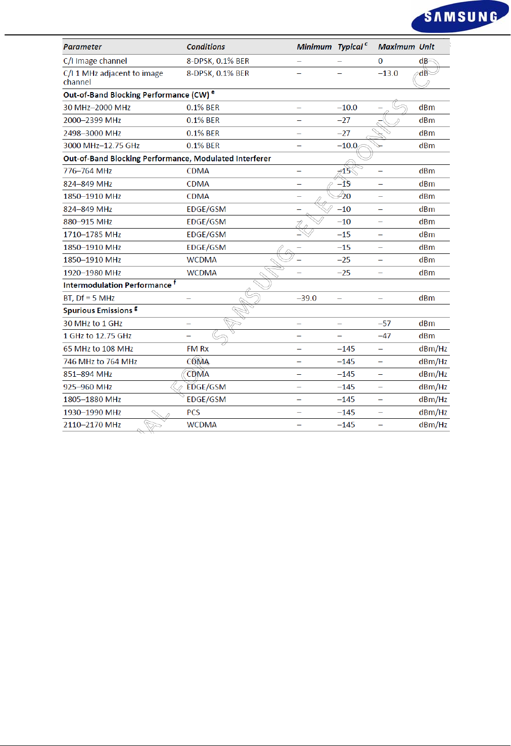 Figure 3-3 Transmitter RF Specifications(bcm20705)