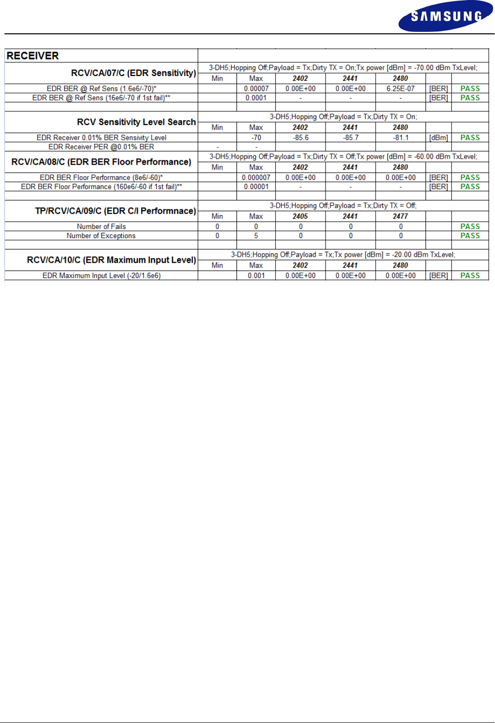 Figure 3-2 Receiver RF Specifications (WIBT40A)
