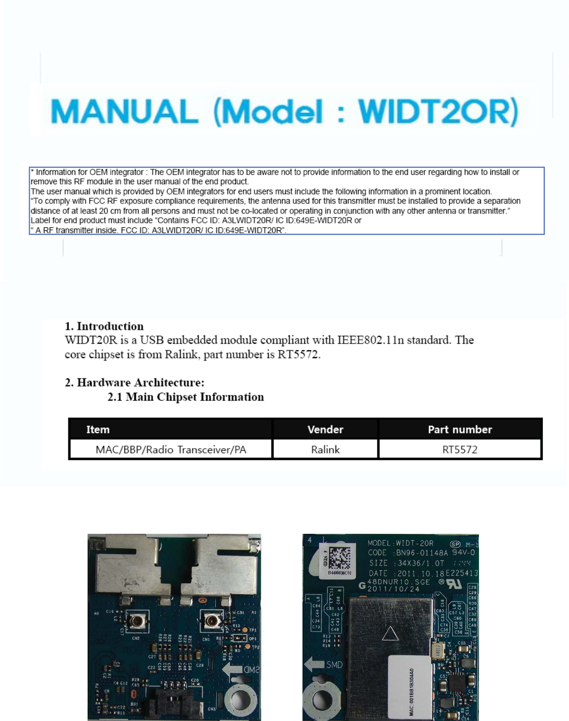 Samsung Electronics Co WIDT20R Wi-Fi Module User Manual manual