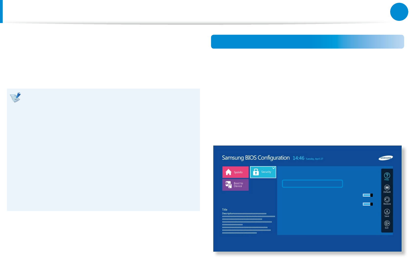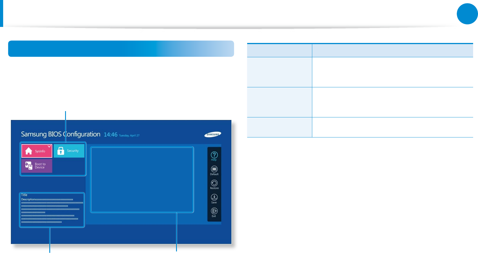 malfunction or crash, take care when conguring the BIOS.