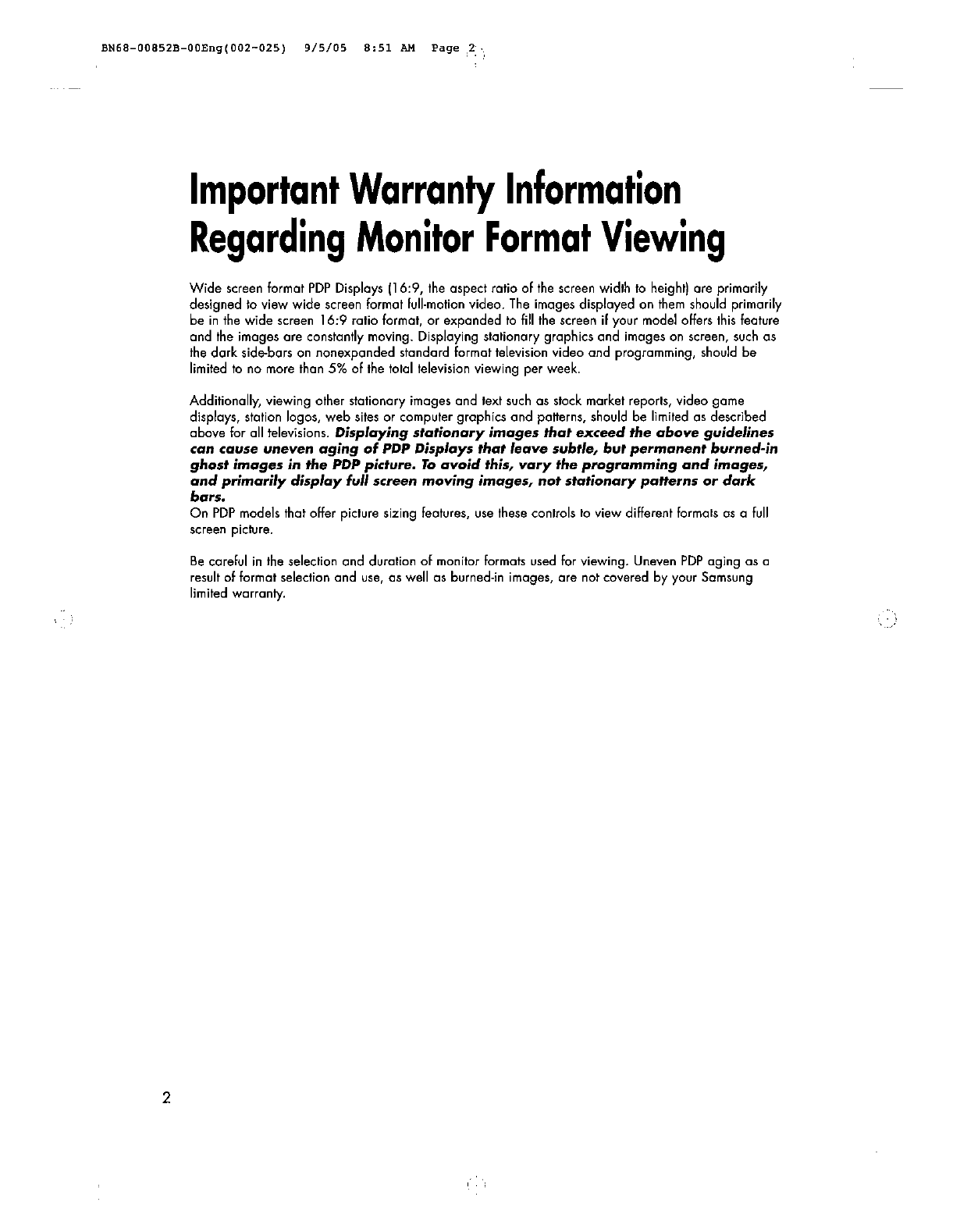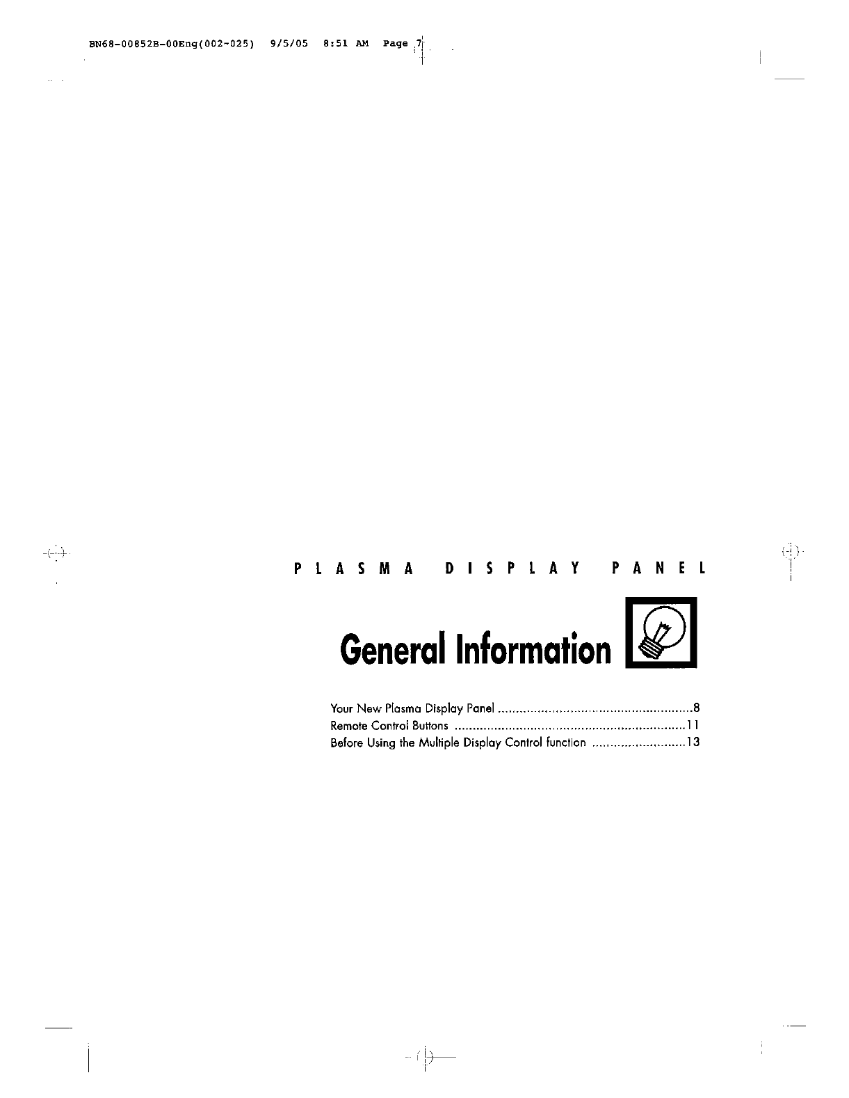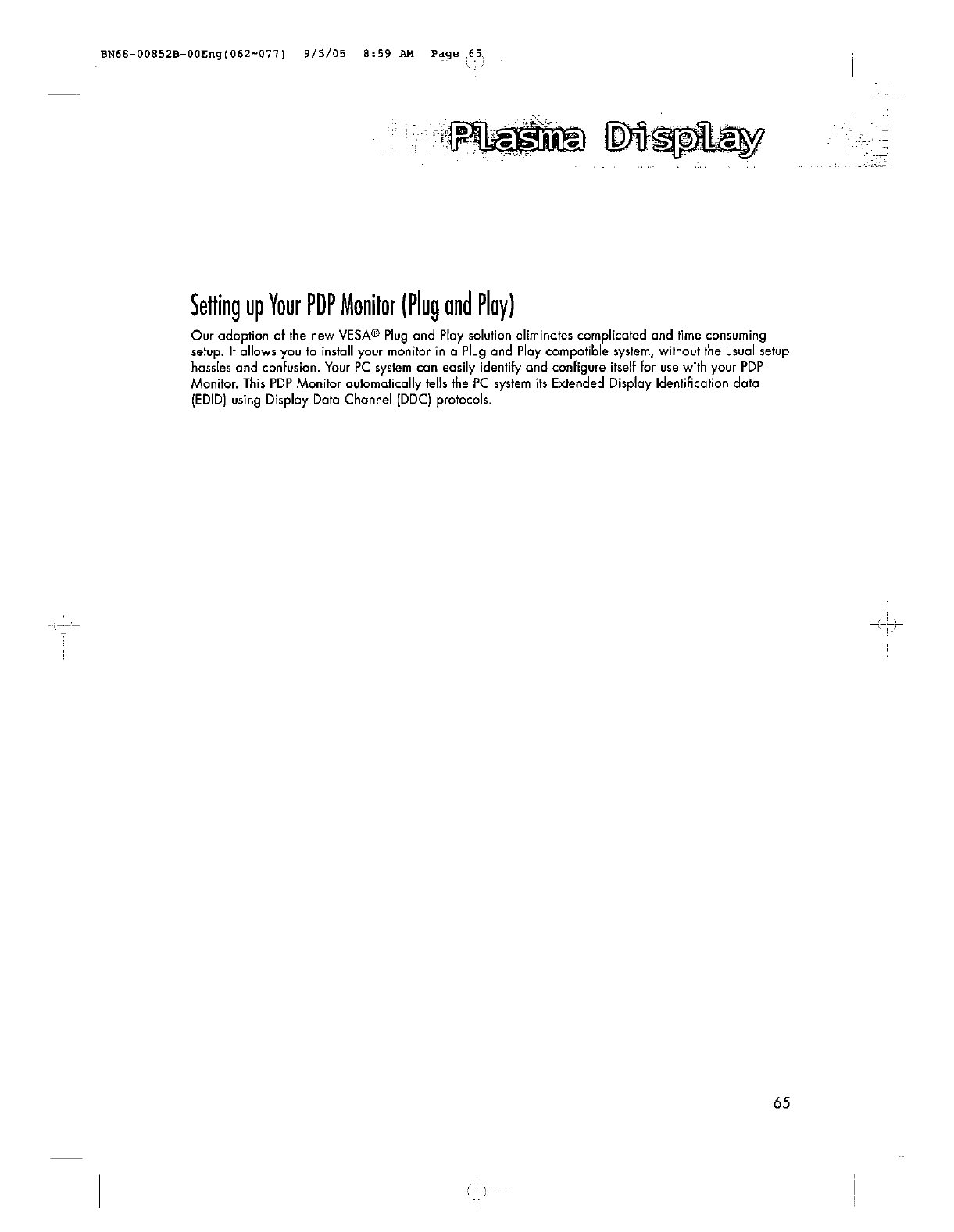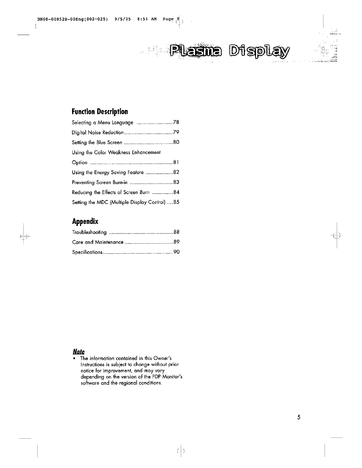 Samsung Electronics Co Ltd 80" PDP Monitor Users Manual