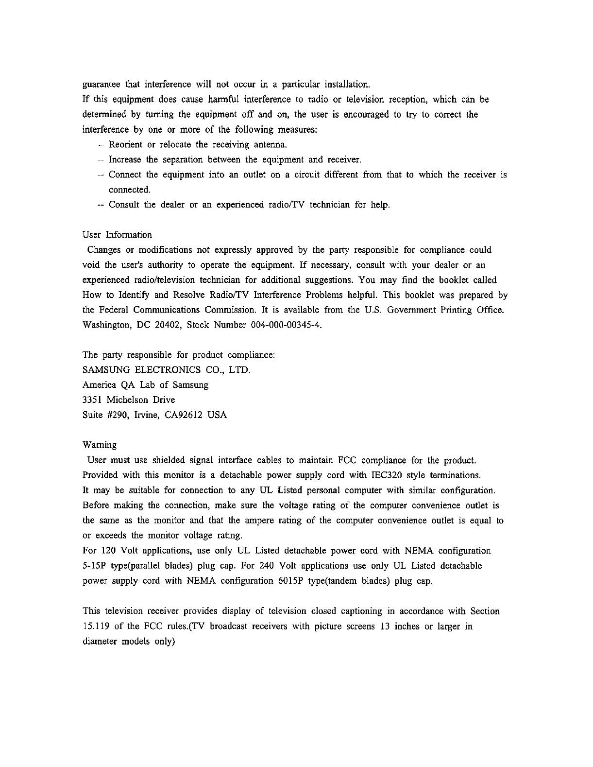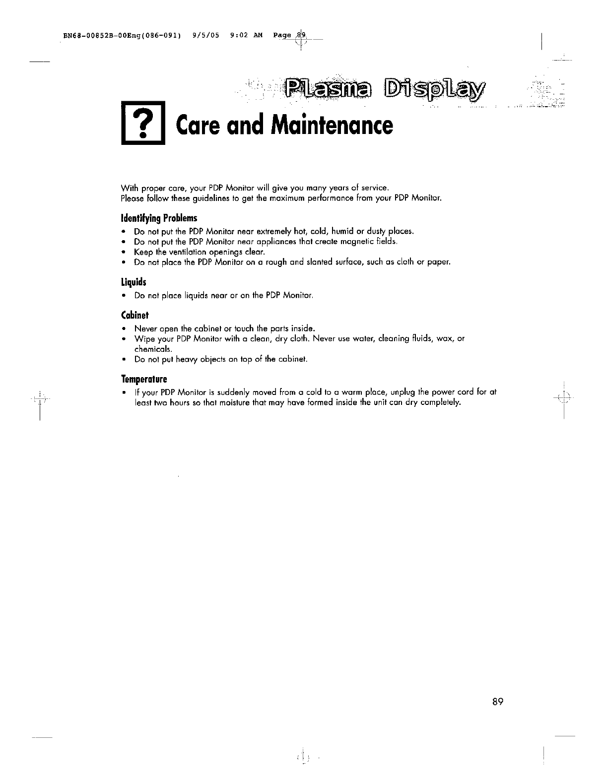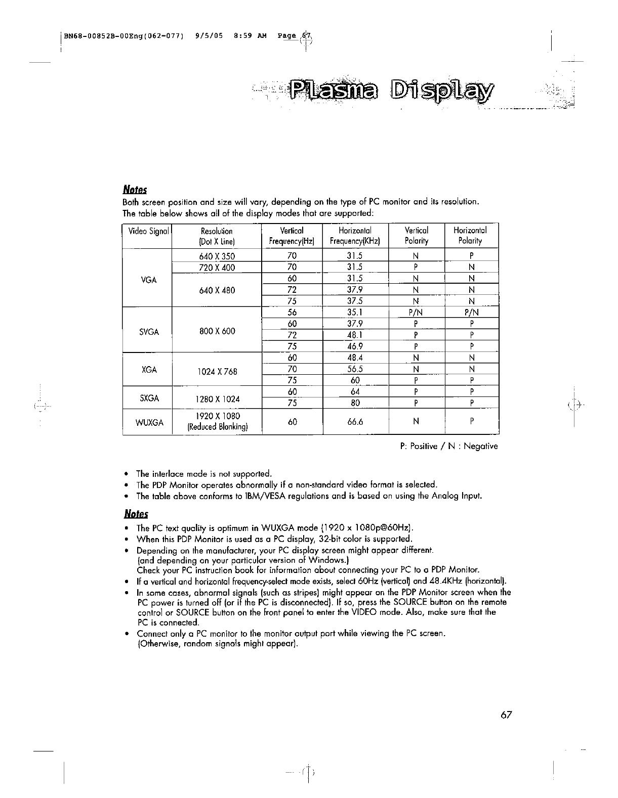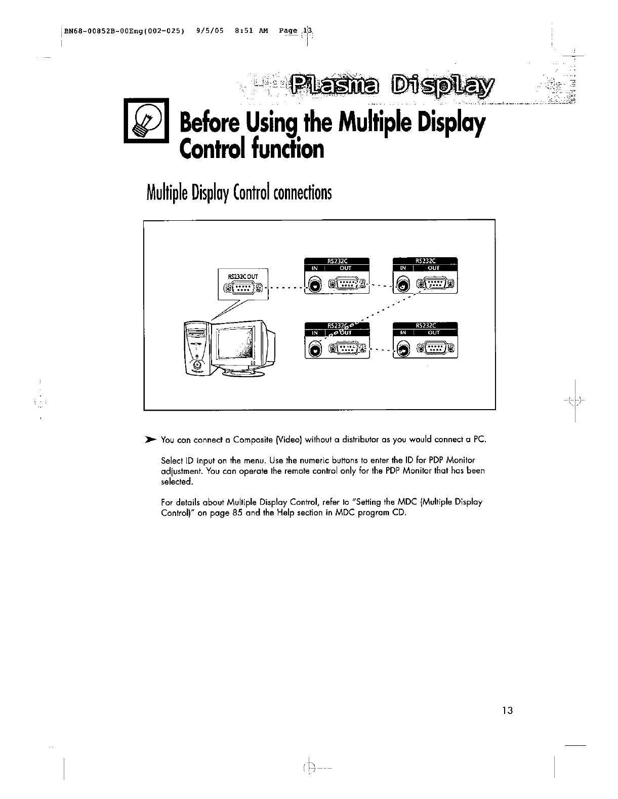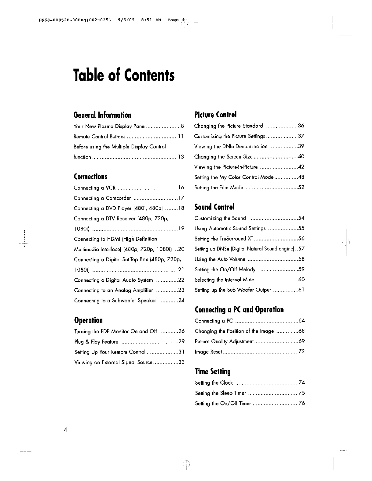 Samsung Electronics Co Ltd 80" PDP Monitor Users Manual