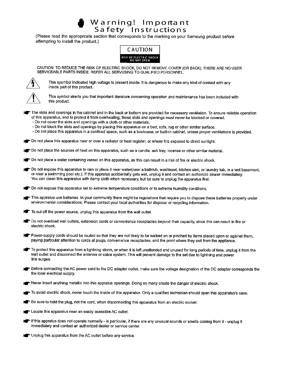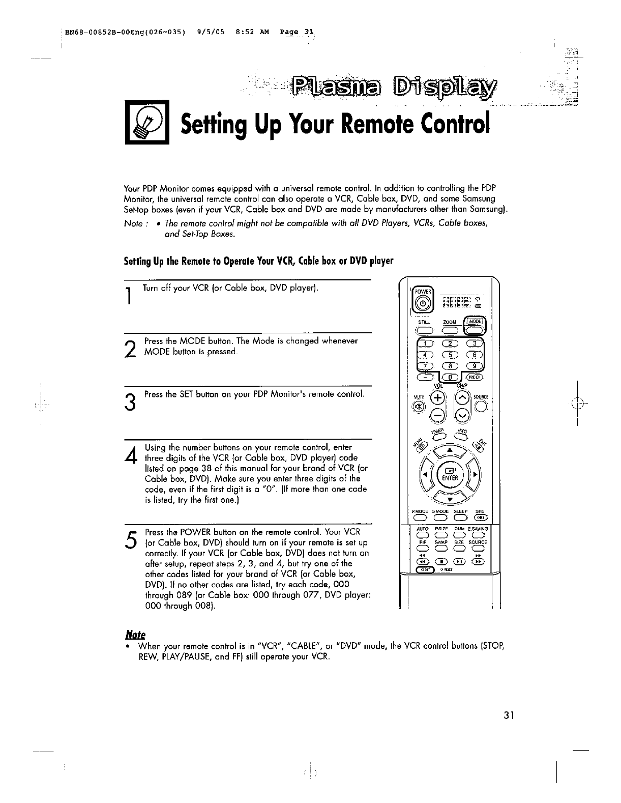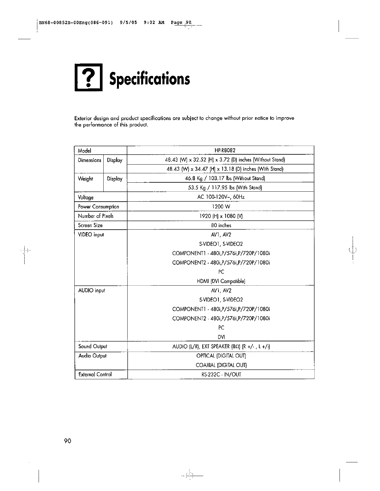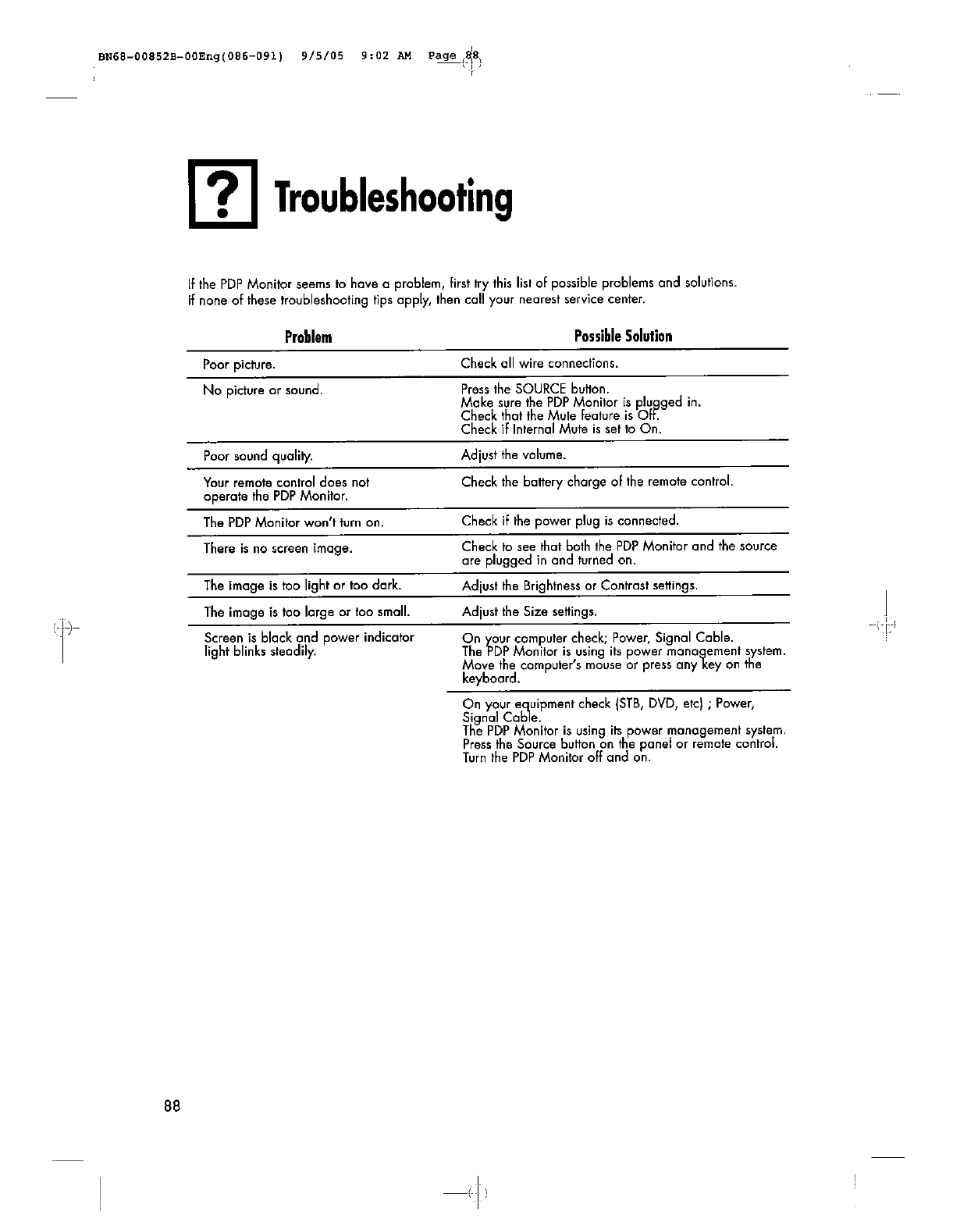 Samsung Electronics Co YP80UO 80" PDP Monitor User Manual