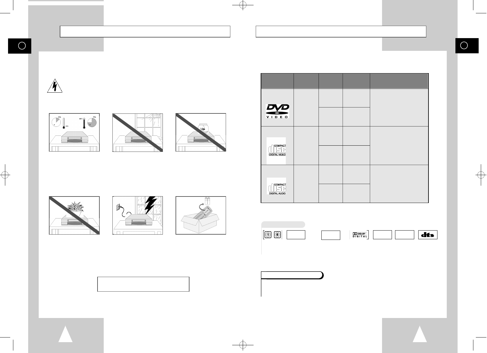Disc DVD, CD (12cm), CD (8cm), VIDEO-CD (12cm)