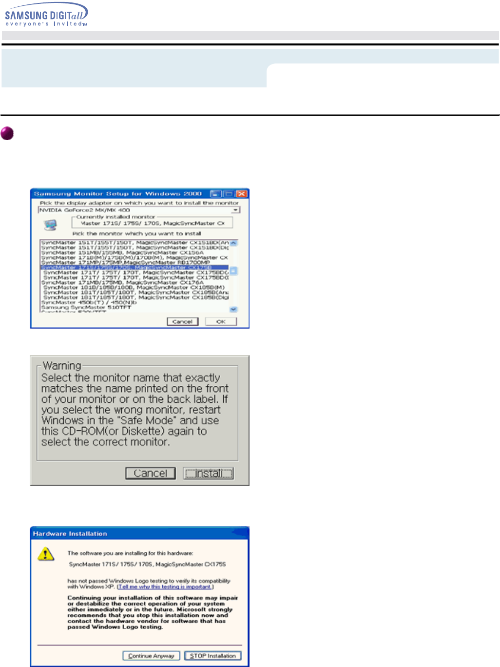 Insert the CD included with the Samsung monitor into the CD-ROM Drive. Then, the initial screen of the
