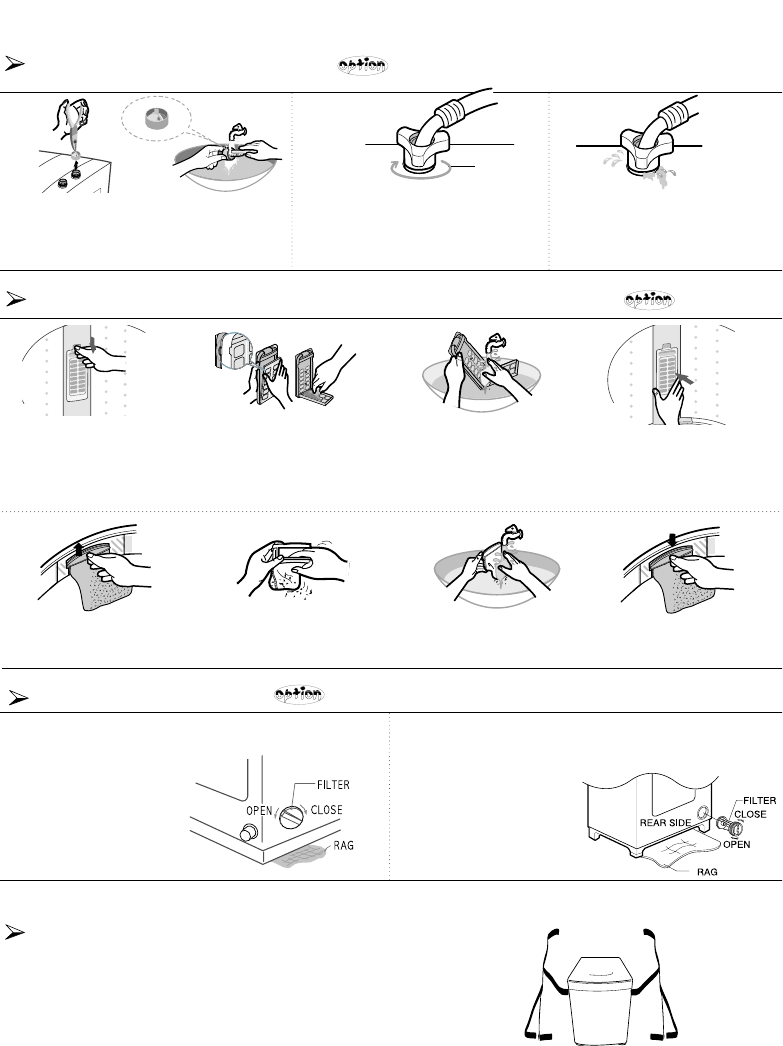 1.Place a rag under washer filter not to wet the floor.