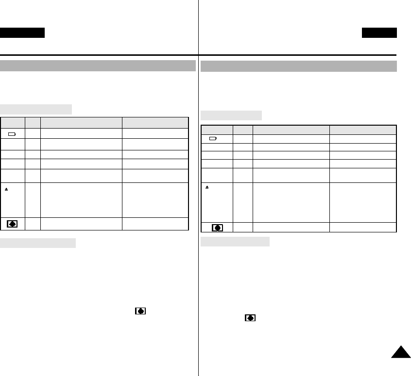 OSD (On Screen Display in CAMERA and PLAYER modes).............................. 18