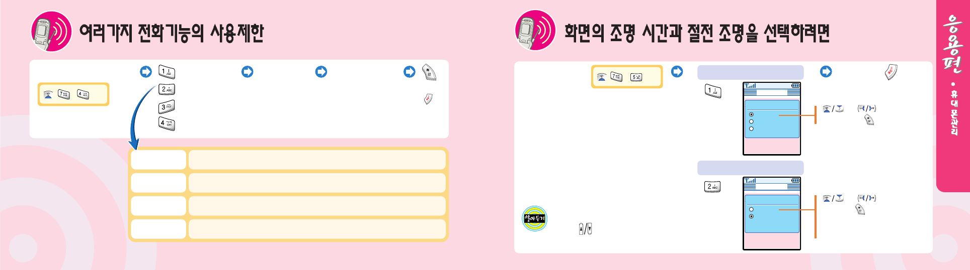 - 화면의 조명 시간과 절전 조명을 선택하려면