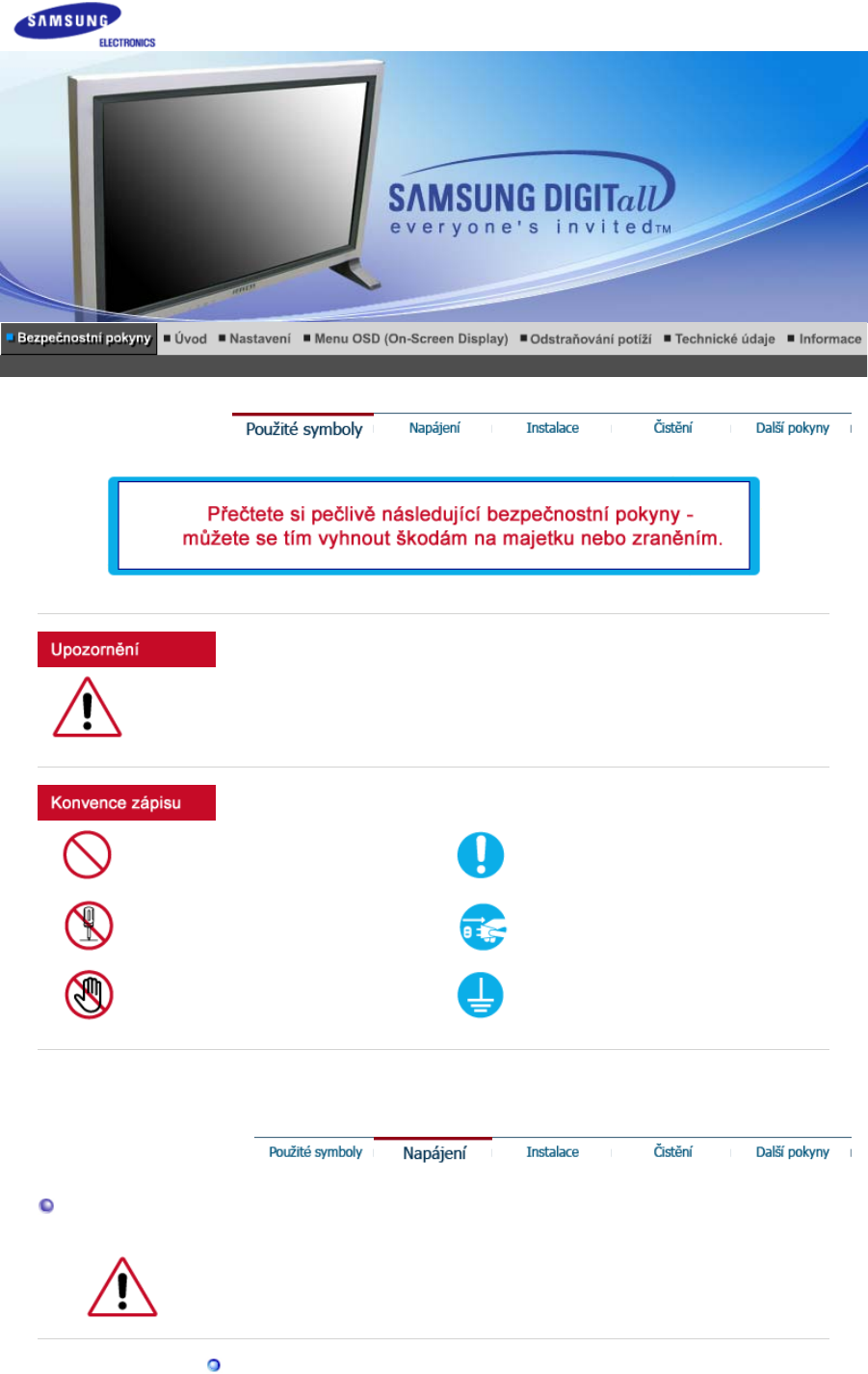 zPokud se do monitoru dostanou cizí látky nebo předměty, vždy se spojte se