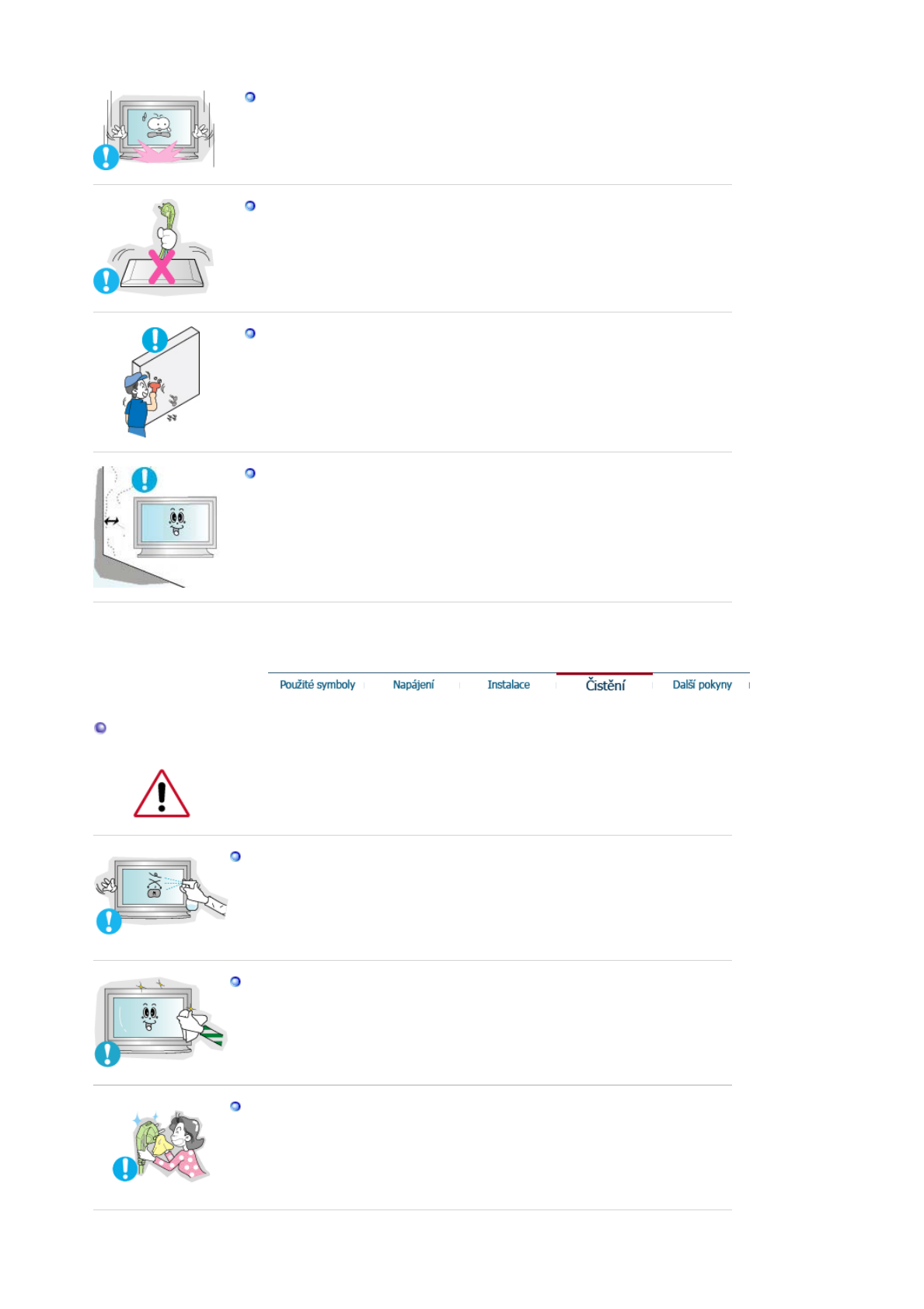 zUdržujte vnitřek monitoru v čistotě. Prach, který se nahromadí v monitoru za