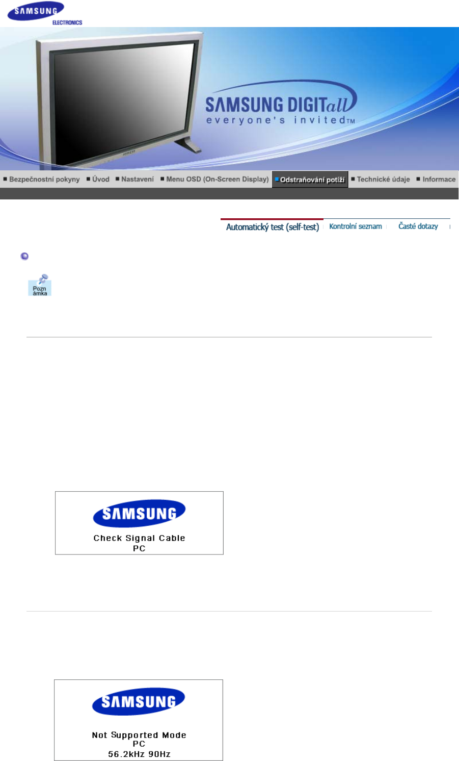 Pokud monitor nepracuje normálně, zejména pokud se z jeho nitra ozývají