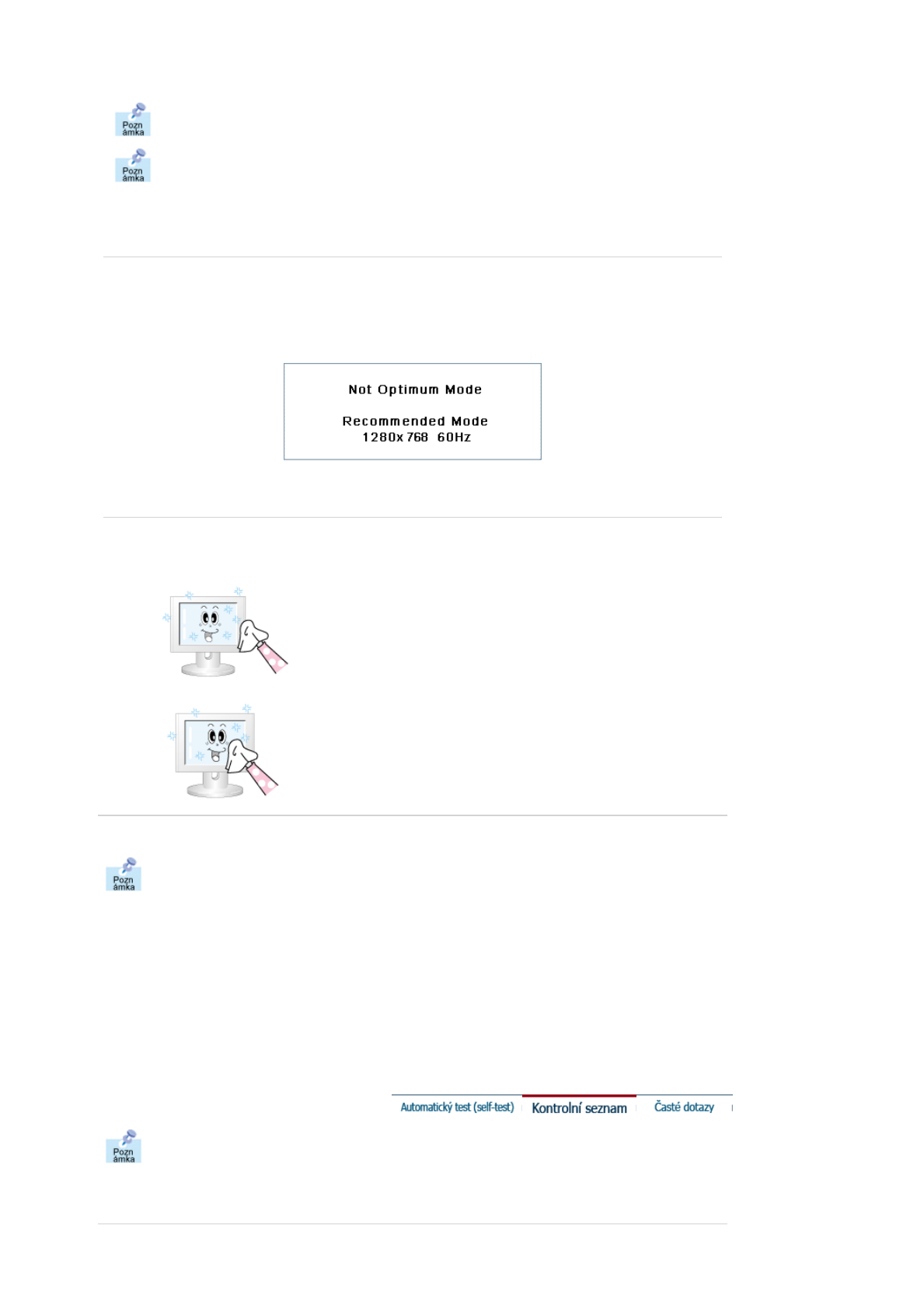 Čistíte-li skříň monitoru nebo obrazovku, používejte mírně navlhčený měkký hadřík.