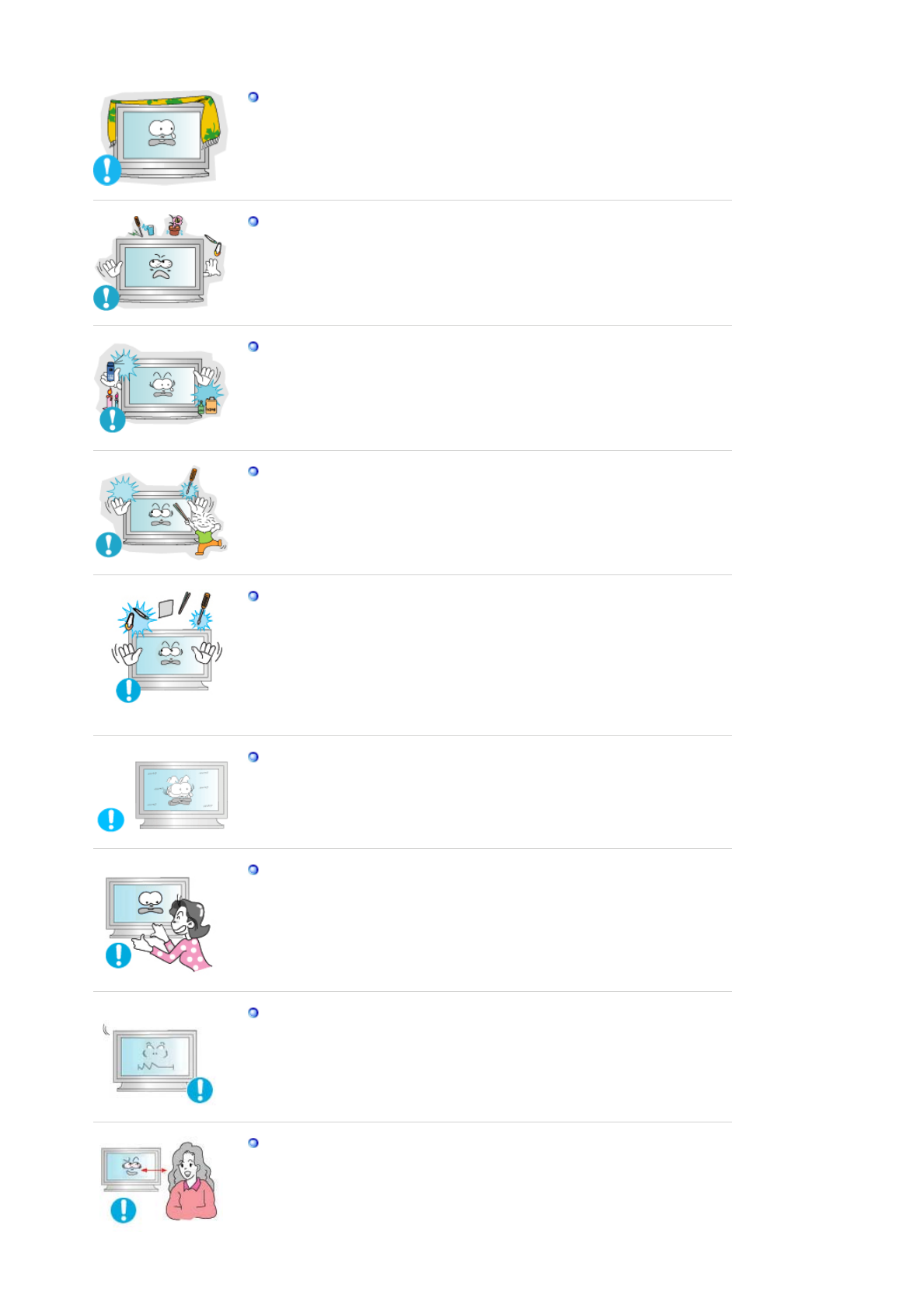 zV opačném případě by uvnitř monitoru mohlo dojít ke zkratu nebo požáru.