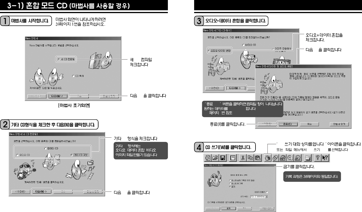 - 3) 혼합모드 CD (마법사를 사용하지 않을 경우)