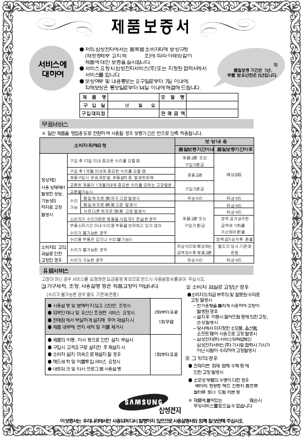 - 제품보증서