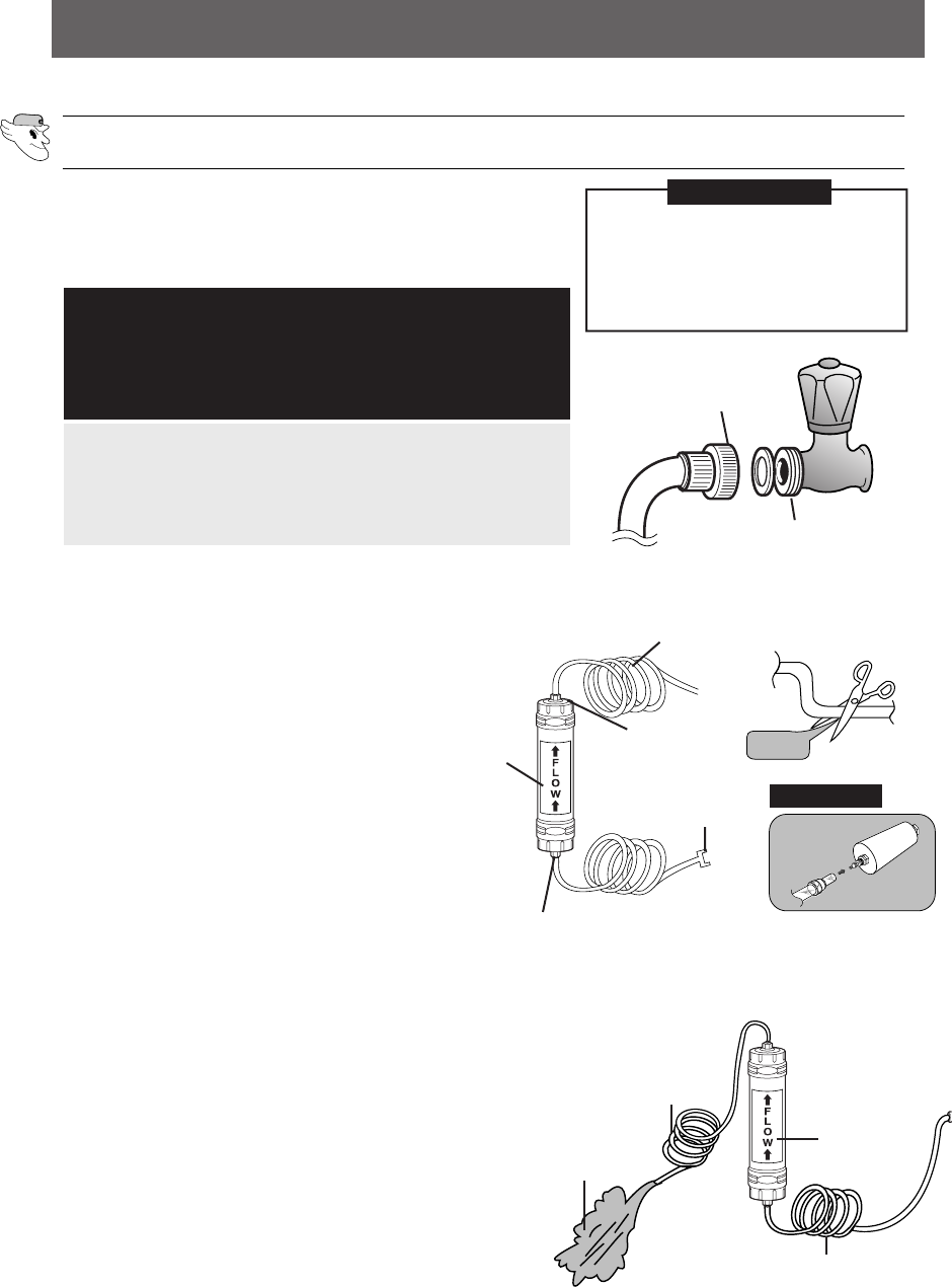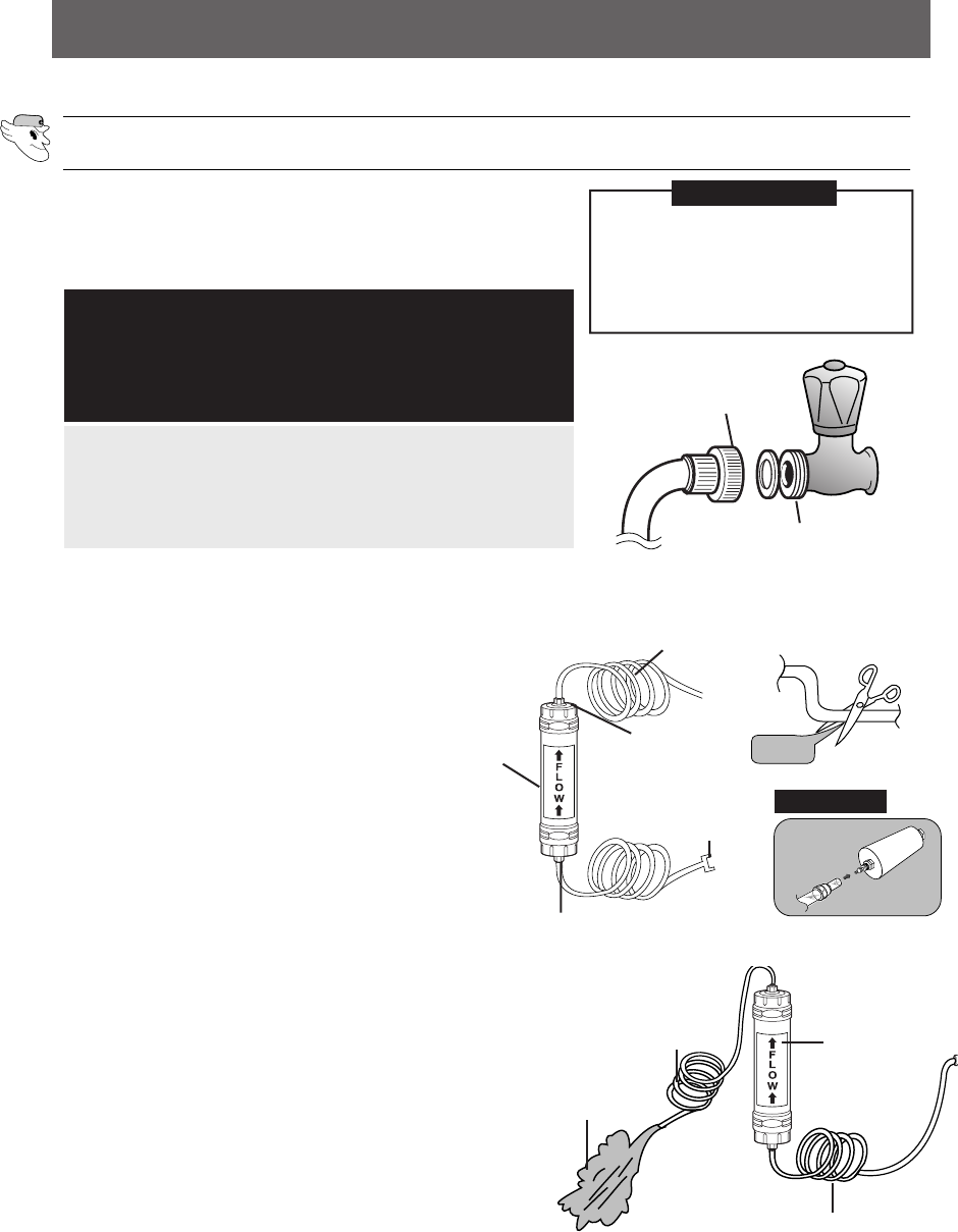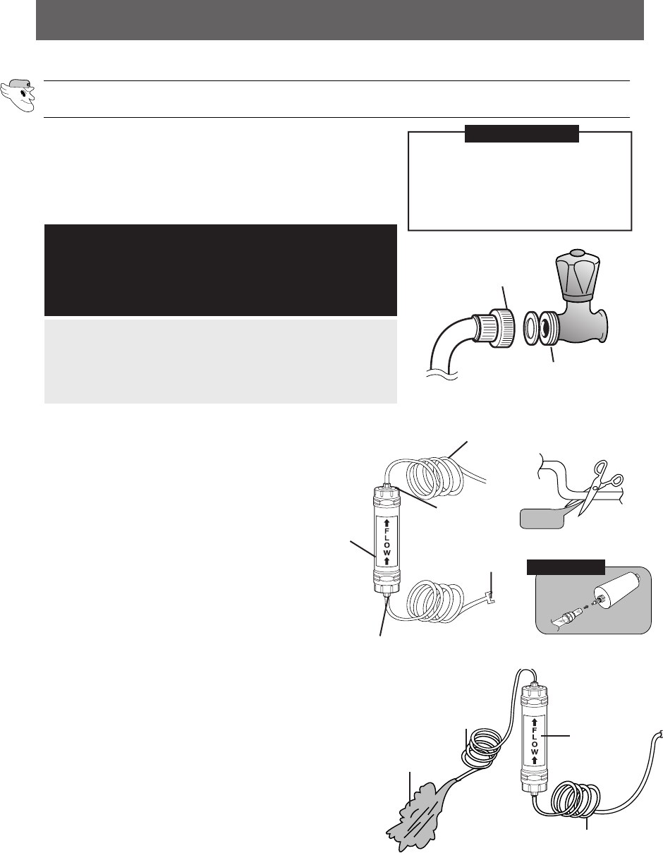 • Kun vettä otetaan ensimmäisen kerran suodattimen asentamisen jälkeen, vesi saattaa purskahtaa