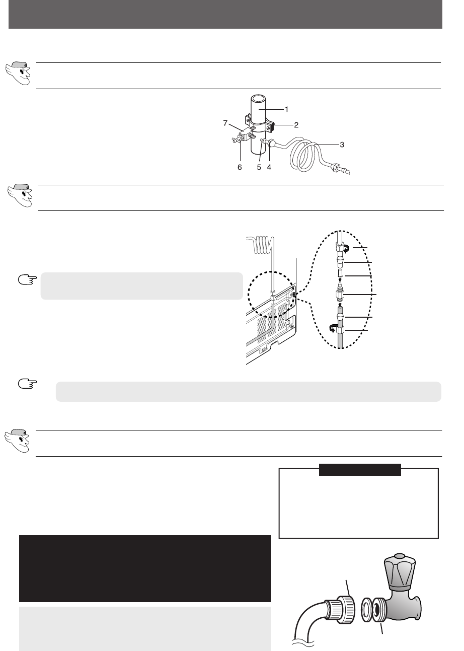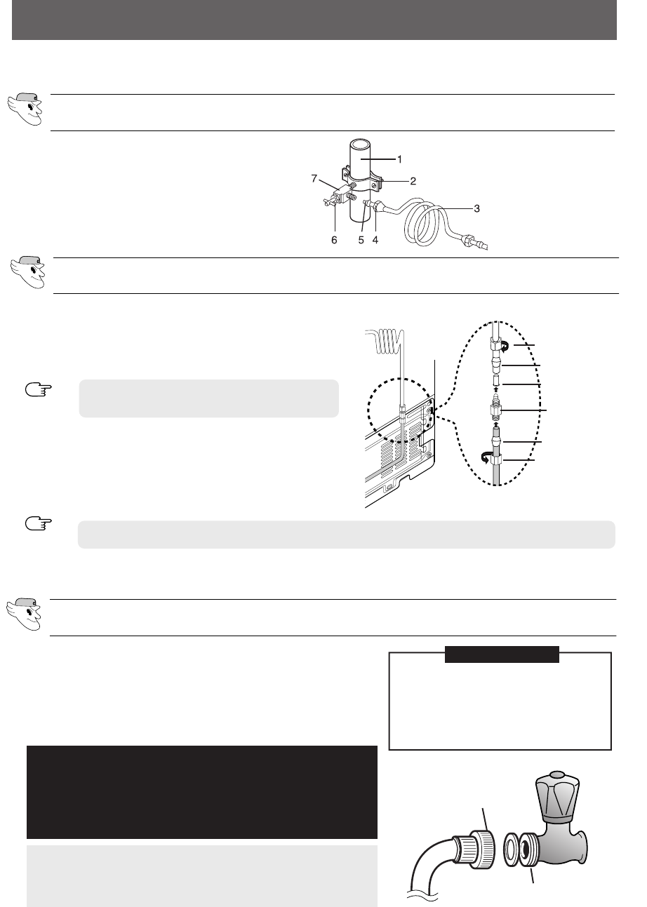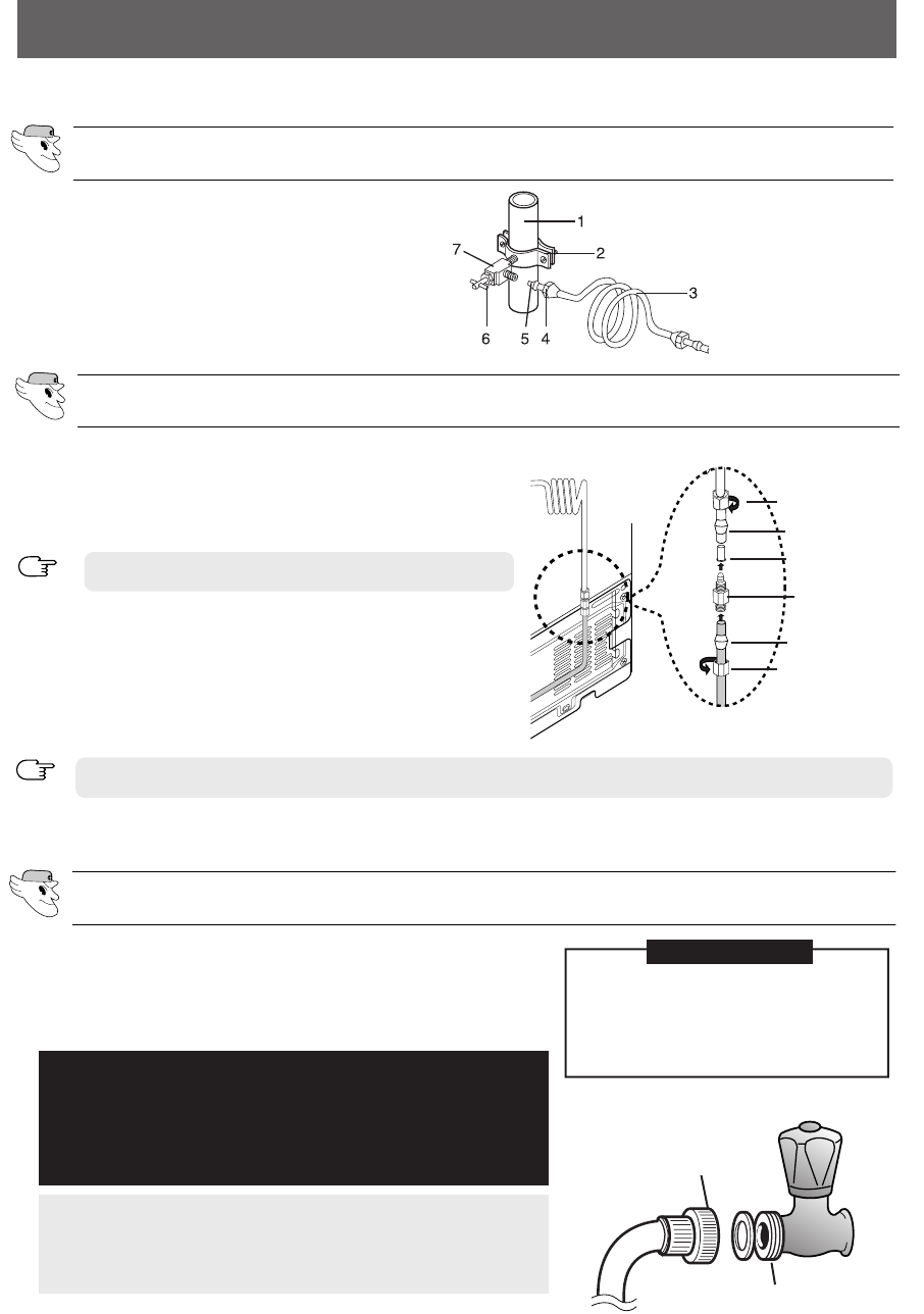 • Kun vettä otetaan ensimmäisen kerran suodattimen asentamisen jälkeen, vesi saattaa purskahtaa