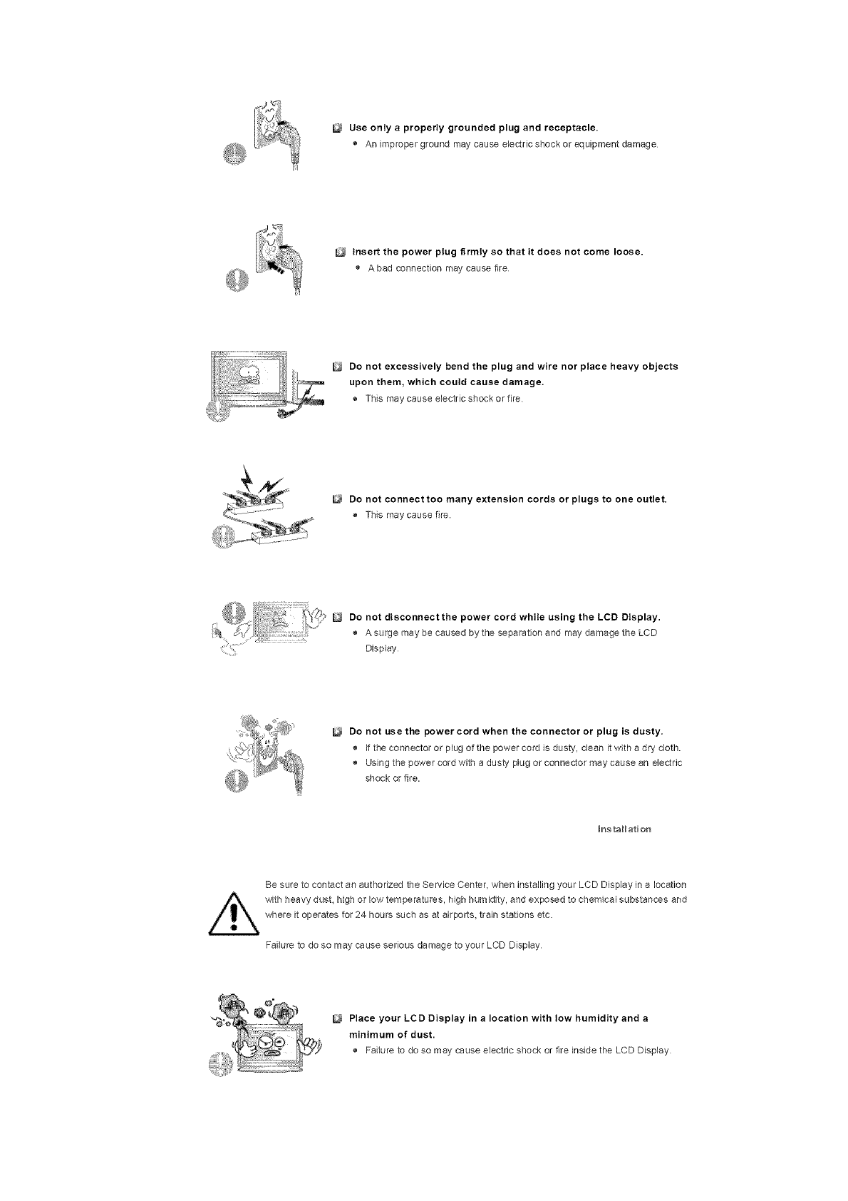 Be sure to contact an authorized the Service Center, when installing your LCD Display in a location
